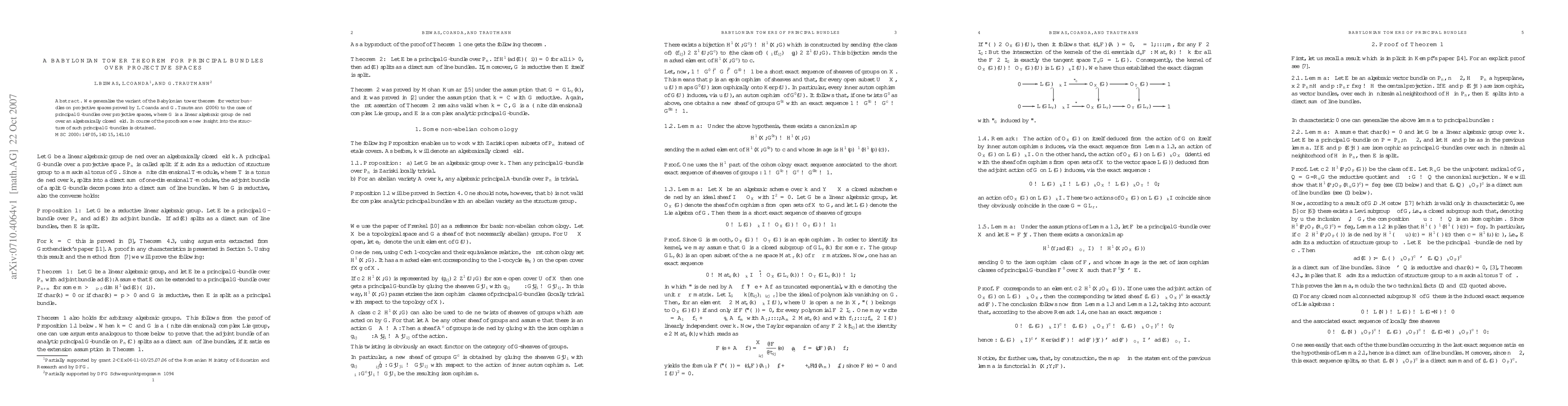 This paper generalizes a theorem originally for vector bundles to principal $G$-bundles over projective spaces, providing new insights into the structure of these bundles. The proofs yield significant advancements in understanding principal bundles in algebraic geometry.