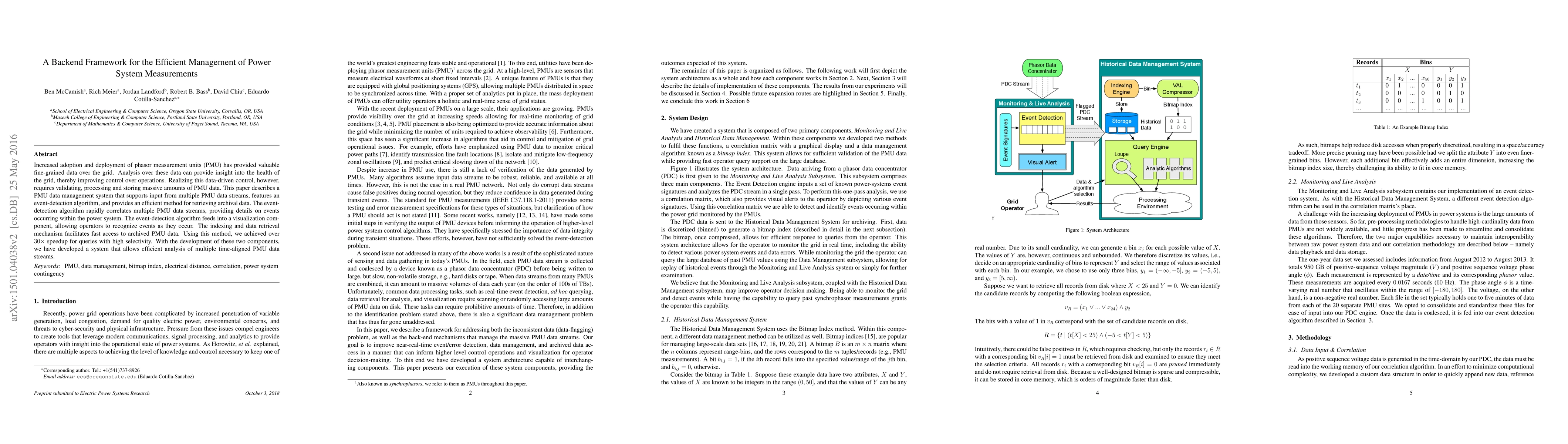 Increased adoption and deployment of phasor measurement units (PMU) has provided valuable fine-grained data over the grid. Analysis over these data can provide insight into the health of the grid, thereby improving control over operations. Realizing this data-driven control, however, requires validating, processing and storing massive amounts of PMU data. This paper describes a PMU data management system that supports input from multiple PMU data streams, features an event-detection algorithm, and provides an efficient method for retrieving archival data. The event-detection algorithm rapidly correlates multiple PMU data streams, providing details on events occurring within the power system. The event-detection algorithm feeds into a visualization component, allowing operators to recognize events as they occur. The indexing and data retrieval mechanism facilitates fast access to archived PMU data. Using this method, we achieved over 30x speedup for queries with high selectivity. With the development of these two components, we have developed a system that allows efficient analysis of multiple time-aligned PMU data streams.