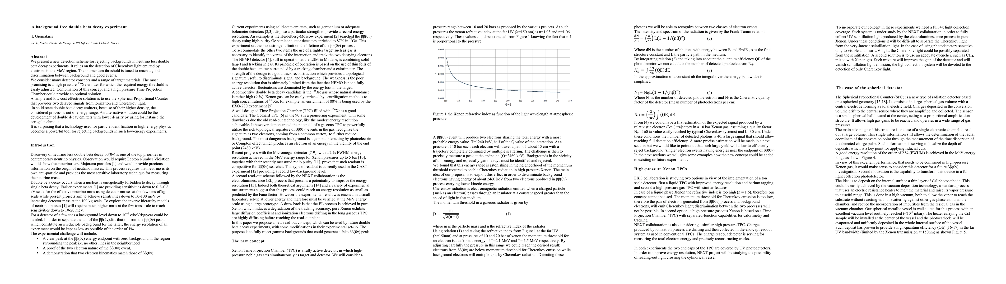 We present a new detection scheme for rejecting backgrounds in neutrino less double beta decay experiments. It relies on the detection of Cherenkov light emitted by electrons in the MeV region. The momentum threshold is tuned to reach a good discrimination between background and good events. We consider many detector concepts and a range of target materials. The most promising is a high-pressure 136Xe emitter for which the required energy threshold is easily adjusted. Combination of this concept and a high pressure Time Projection Chamber could provide an optimal solution. A simple and low cost effective solution is to use the Spherical Proportional Counter that provides two delayed signals from ionization and Cherenkov light. In solid-state double beta decay emitters, because of their higher density, the considered process is out of energy range. An alternative solution could be the development of double decay emitters with lower density by using for instance the aerogel technique. It is surprising that a technology used for particle identification in high-energy physics becomes a powerful tool for rejecting backgrounds in such low-energy experiments.