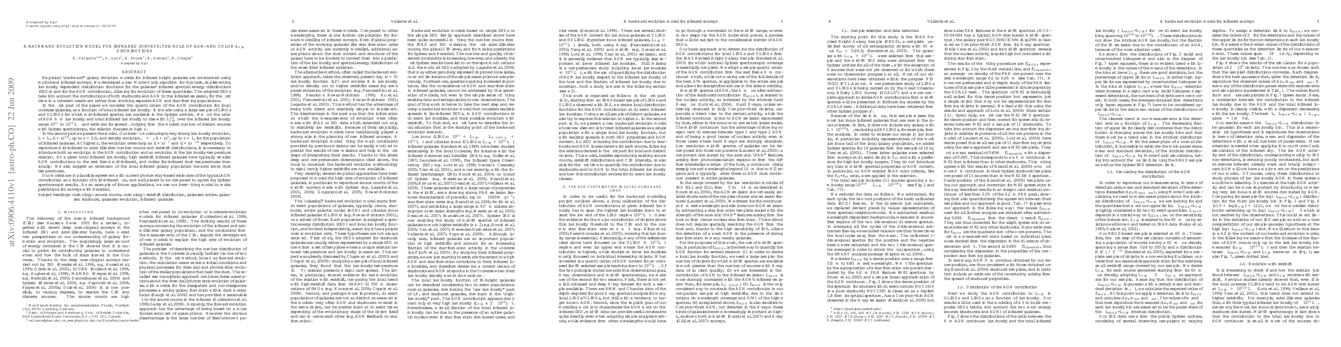 Empirical "backward" galaxy evolution models for infrared bright galaxies are constrained using multi-band infrared surveys. We developed a new Monte-Carlo algorithm for this task, implementing luminosity dependent distribution functions for the galaxies' infrared spectral energy distributions (SEDs) and for the AGN contribution, allowing for evolution of these quantities. The adopted SEDs take into account the contributions of both starbursts and AGN to the infrared emission, for the first time in a coherent treatment rather than invoking separate AGN and star-forming populations. In the first part of the paper we consider the quantification of the AGN contribution for local universe galaxies, as a function of total infrared luminosity. It is made using a large sample of LIRGs and ULIRGs for which mid-infrared spectra are available in the Spitzer archive. In the second part we present the model. Our best-fit model adopts very strong luminosity evolution, $L=L_0(1+z)^{3.4}$, up to $z=2.3$, and density evolution, $\rho=\rho_0(1+z)^2$, up to $z=1$, for the population of infrared galaxies. At higher $z$, the evolution rates drop as $(1+z)^{-1}$ and $(1+z)^{-1.5}$ respectively. To reproduce mid-infrared to submillimeter number counts and redshift distributions, it is necessary to introduce both an evolution in the AGN contribution and an evolution in the luminosity-temperature relation. Our models are in plausible agreement with current photometry-based estimates of the typical AGN contribution as a function of mid-infrared flux, and well placed to be compared to upcoming Spitzer spectroscopic results. As an example of future applications, we use our best-fitting model to make predictions for surveys with Herschel.