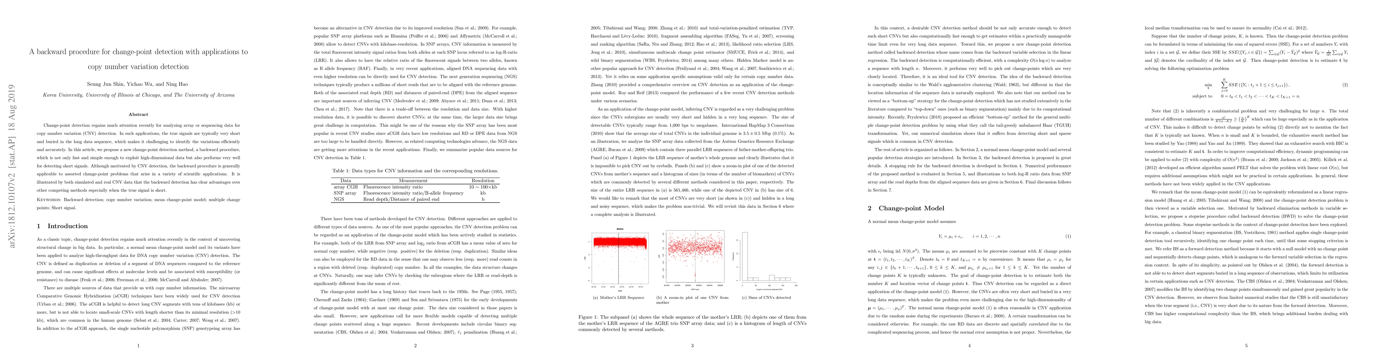 This paper proposes a new backward procedure for change-point detection, which is efficient and effective for detecting short signals in high-dimensional data, particularly for copy number variation (CNV) detection. The method outperforms other techniques, as demonstrated through both simulated and real CNV data.