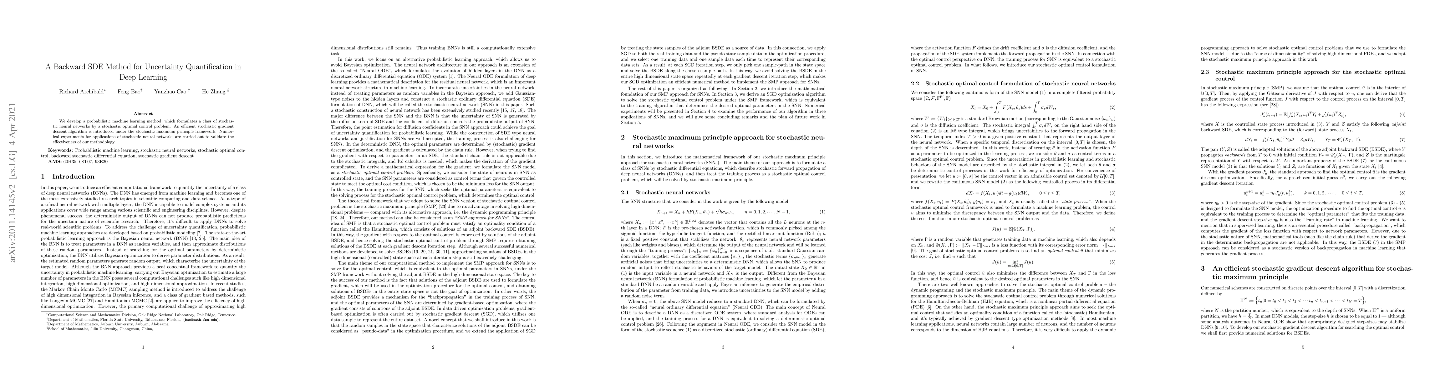 We develop a probabilistic machine learning method, which formulates a class of stochastic neural networks by a stochastic optimal control problem. An efficient stochastic gradient descent algorithm is introduced under the stochastic maximum principle framework. Numerical experiments for applications of stochastic neural networks are carried out to validate the effectiveness of our methodology.