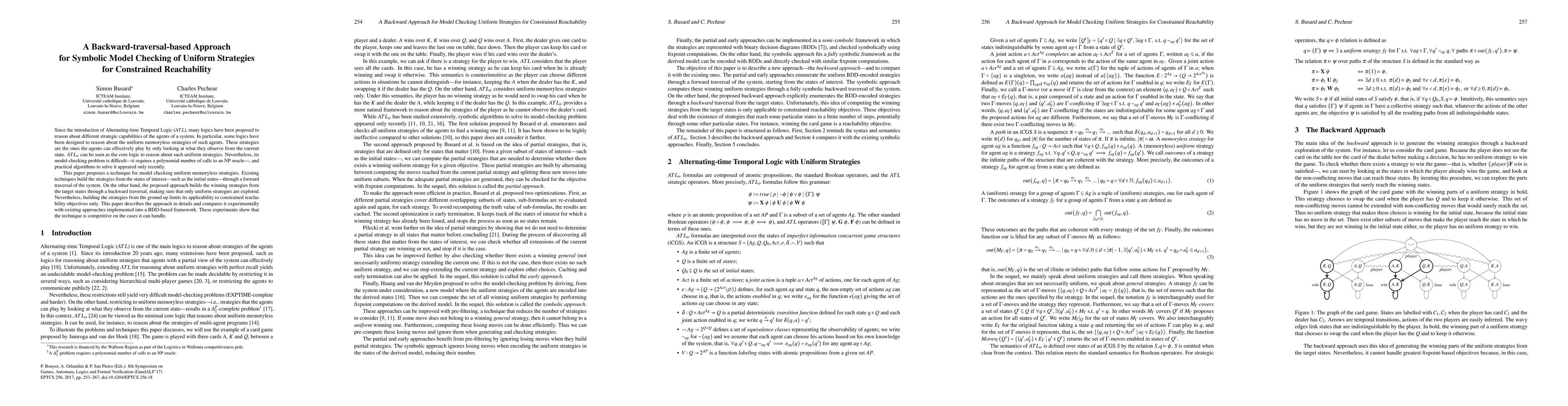 Researchers propose a new method for checking strategies in systems, using backward traversal instead of forward traversal to improve efficiency and applicability.