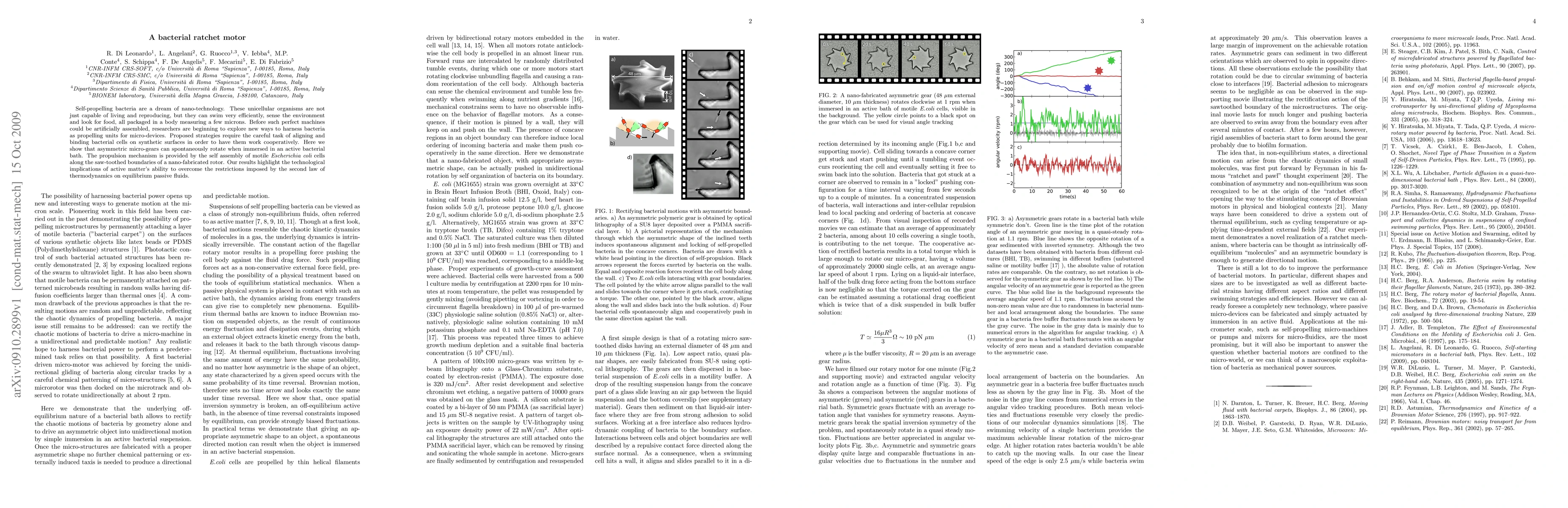 This paper explores the use of motile bacteria, specifically Escherichia coli, to drive the rotation of asymmetric micro-gears, demonstrating a potential method for harnessing biological propulsion in nanotechnology. The findings suggest that bacteria can overcome thermodynamic constraints, offering promising technological applications.