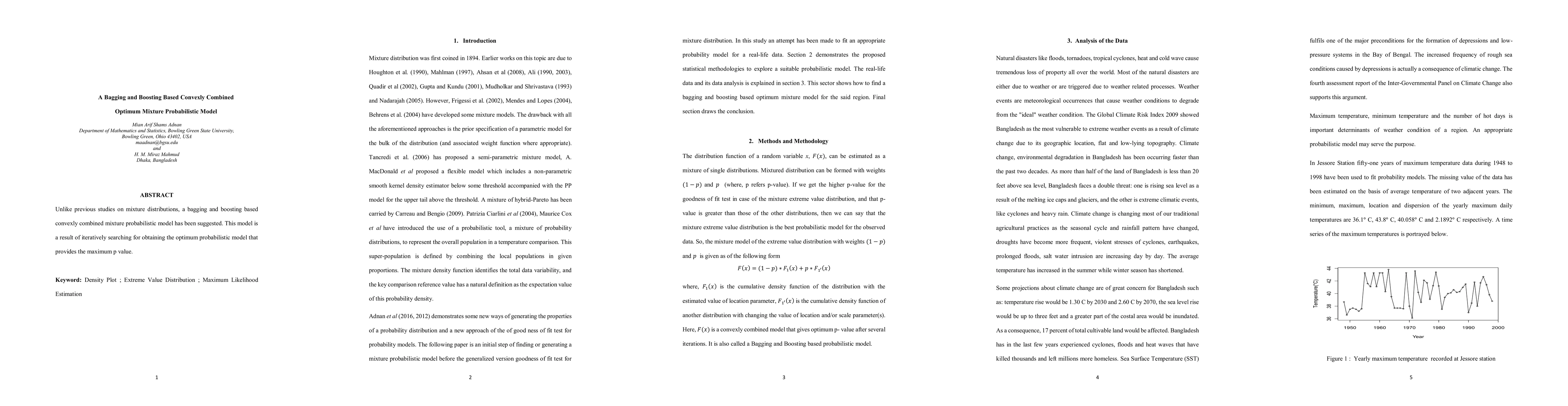 Summary: This paper proposes a novel mixture probabilistic model combining bagging and boosting techniques to iteratively search for an optimal model that maximizes the p value, differing from traditional mixture distribution approaches. The model aims to improve probabilistic accuracy through convex combination.