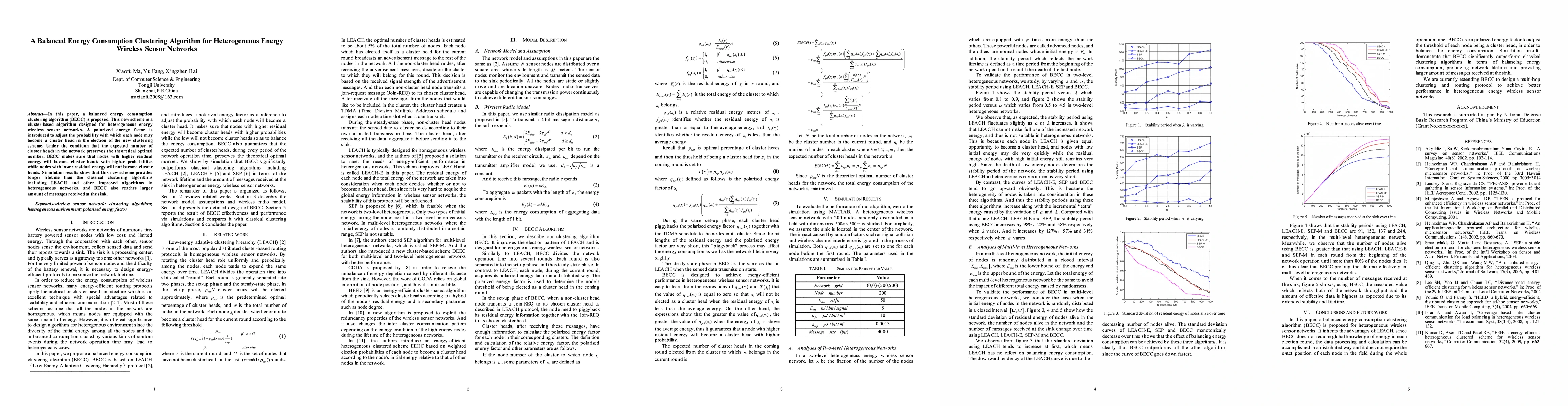 The paper proposes a Balanced Energy Consumption Clustering Algorithm (BECC) for heterogeneous energy wireless sensor networks, which uses a polarized energy factor to ensure that nodes with higher residual energy become cluster heads more frequently, thereby extending network lifetime and improving message reception at the sink compared to classical algorithms like LEACH.
