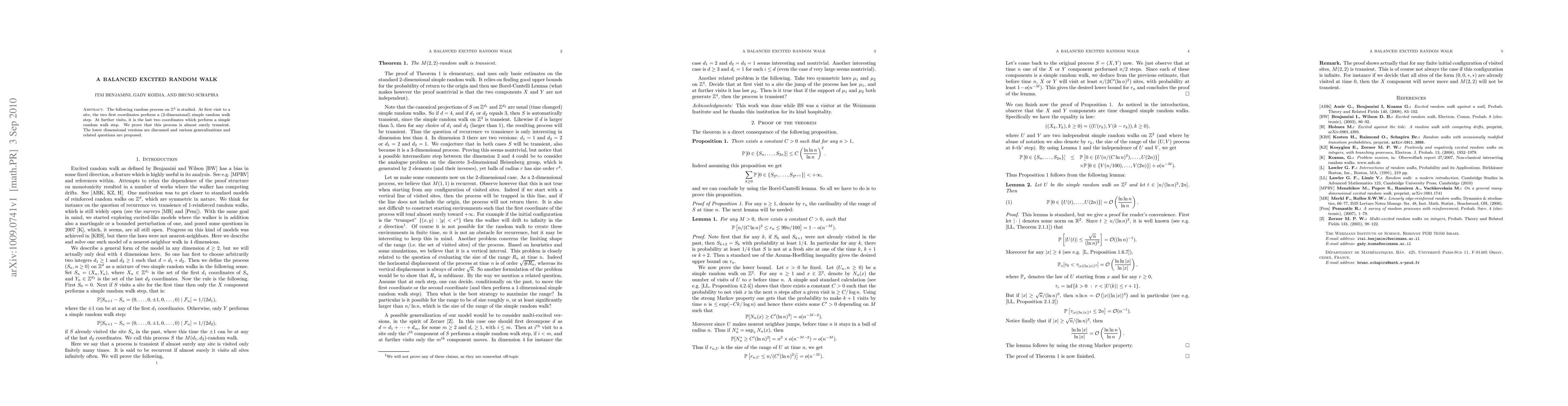 This paper studies a balanced excited random walk on $\Z^4$ where the first two coordinates move at the first visit and the last two coordinates move at subsequent visits. The authors prove that this process is almost surely transient and discuss lower-dimensional versions and potential generalizations.