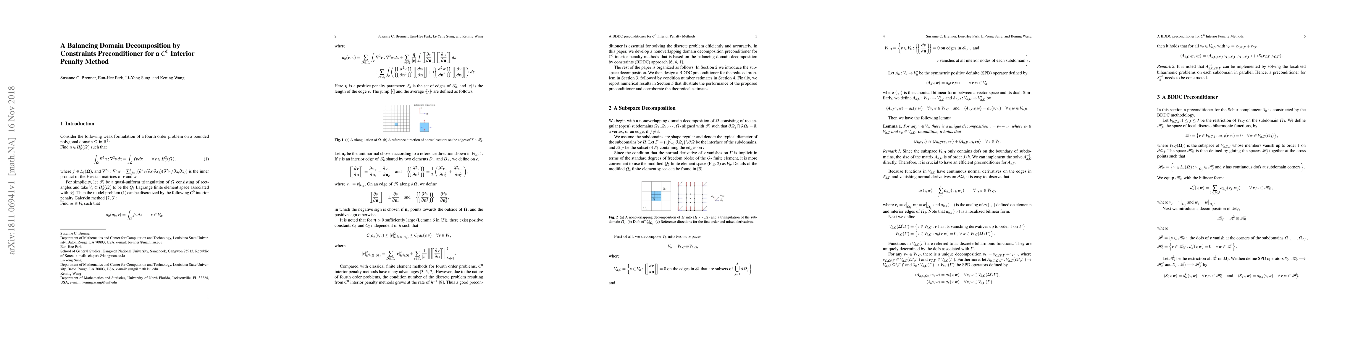 Researchers developed a method to improve efficiency in solving the biharmonic problem using domain decomposition and balancing constraints, achieving a condition number bound of $C (1+ ln (H/h))^2$.