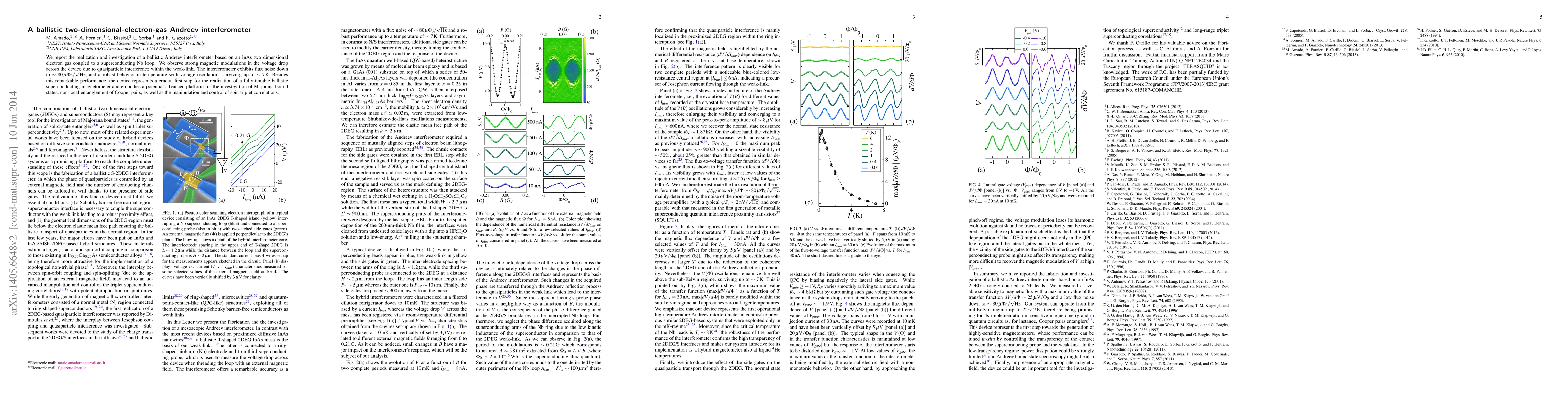 This paper reports the creation and study of a ballistic Andreev interferometer using an InAs two-dimensional electron gas connected to a superconducting Nb loop, showing strong magnetic modulations and low flux noise. The device's robust temperature performance and potential applications for superconducting magnetometry and Majorana bound states research are highlighted.
