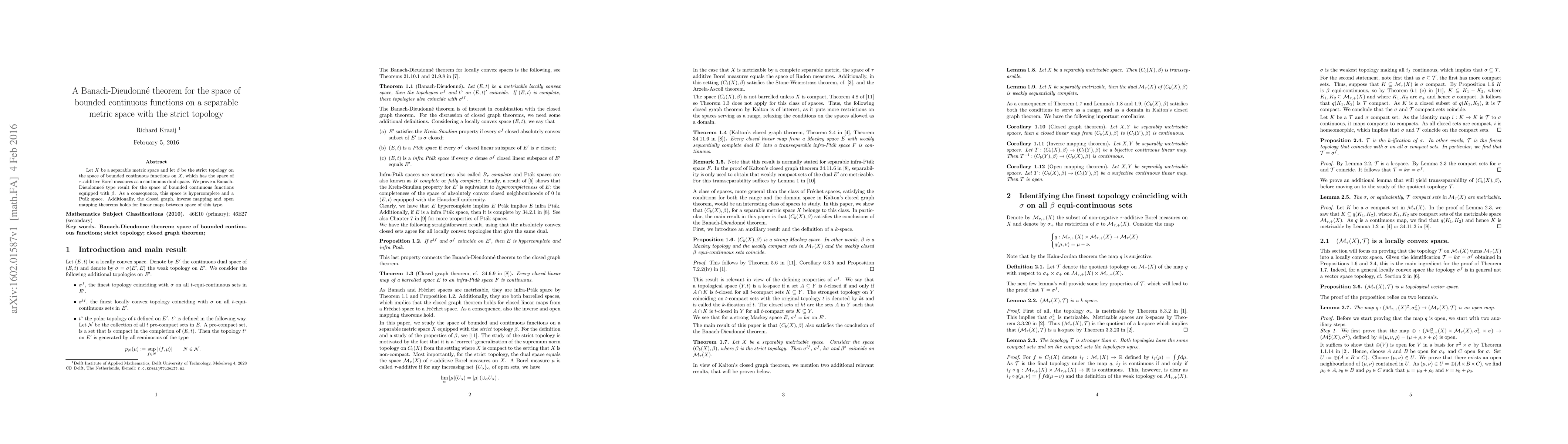 Let X be a separable metric space and let \beta be the strict topology on the space of bounded continuous functions on X, which has the space of \tau-additive Borel measures as a continuous dual space. We prove a Banach-Dieudonne\'{e} type result for the space of bounded continuous functions equipped with \beta. As a consequence, this space is hypercomplete and a Pt\'{a}k space. Additionally, the closed graph, inverse mapping and open mapping theorems holds for linear maps between space of this type.