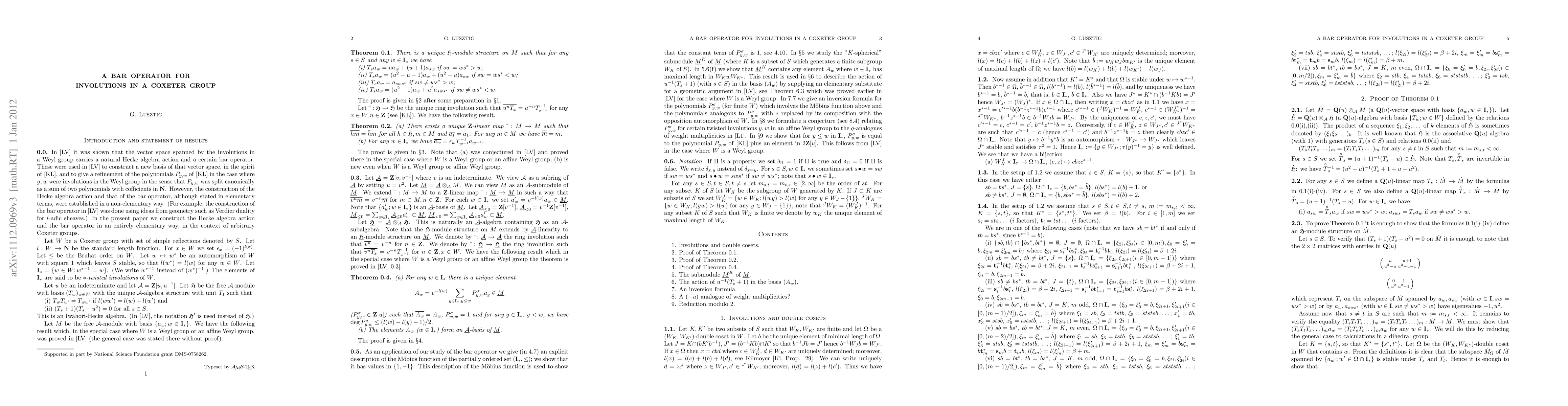 Researchers developed a new definition of Hecke algebra action and bar operator for involutions in Coxeter groups, making it elementary and applicable to arbitrary groups.