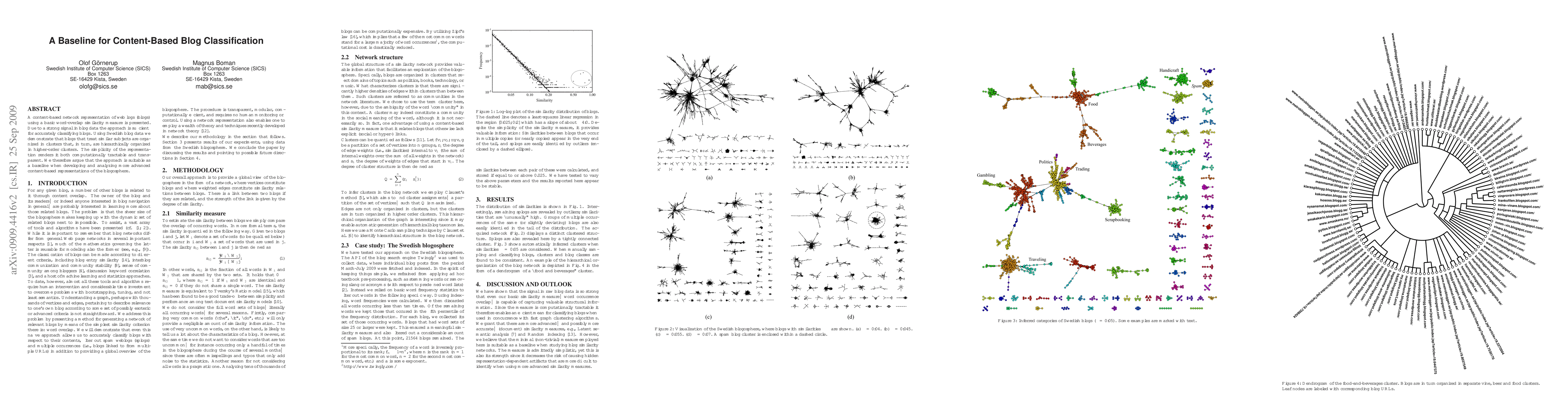 A content-based network representation of web logs (blogs) using a basic word-overlap similarity measure is presented. Due to a strong signal in blog data the approach is sufficient for accurately classifying blogs. Using Swedish blog data we demonstrate that blogs that treat similar subjects are organized in clusters that, in turn, are hierarchically organized in higher-order clusters. The simplicity of the representation renders it both computationally tractable and transparent. We therefore argue that the approach is suitable as a baseline when developing and analyzing more advanced content-based representations of the blogosphere.