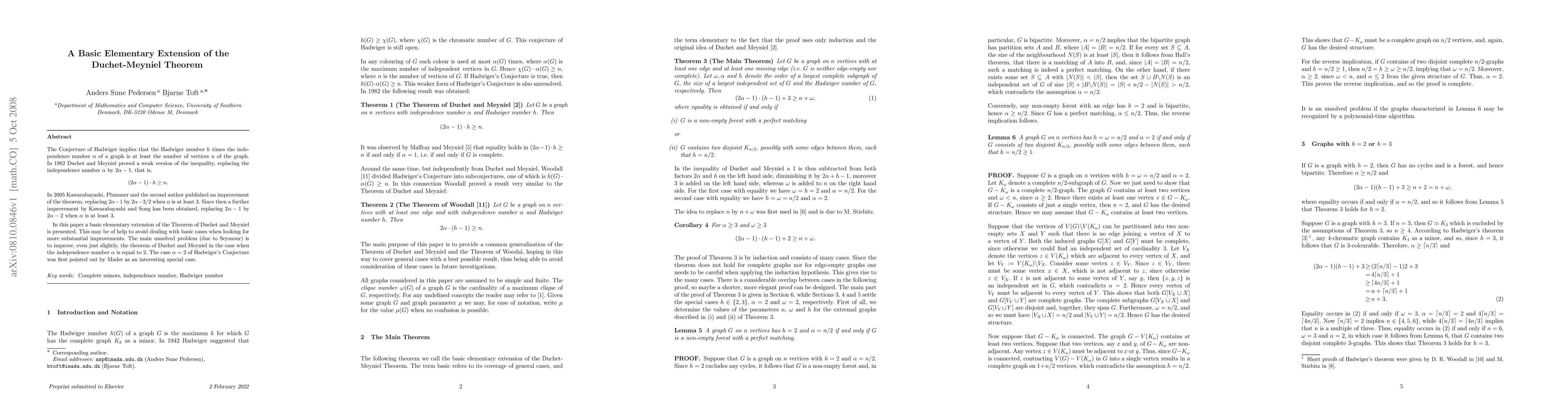 The Conjecture of Hadwiger implies that the Hadwiger number $h$ times the independence number $\alpha$ of a graph is at least the number of vertices $n$ of the graph. In 1982 Duchet and Meyniel proved a weak version of the inequality, replacing the independence number $\alpha$ by $2\alpha-1$, that is, $$(2\alpha-1)\cdot h \geq n.$$ In 2005 Kawarabayashi, Plummer and the second author published an improvement of the theorem, replacing $2\alpha - 1$ by $2\alpha - 3/2$ when $\alpha$ is at least 3. Since then a further improvement by Kawarabayashi and Song has been obtained, replacing $2\alpha - 1$ by $2\alpha - 2$ when $\alpha$ is at least 3. In this paper a basic elementary extension of the Theorem of Duchet and Meyniel is presented. This may be of help to avoid dealing with basic cases when looking for more substantial improvements. The main unsolved problem (due to Seymour) is to improve, even just slightly, the theorem of Duchet and Meyniel in the case when the independence number $\alpha$ is equal to 2. The case $\alpha = 2$ of Hadwiger's Conjecture was first pointed out by Mader as an interesting special case.