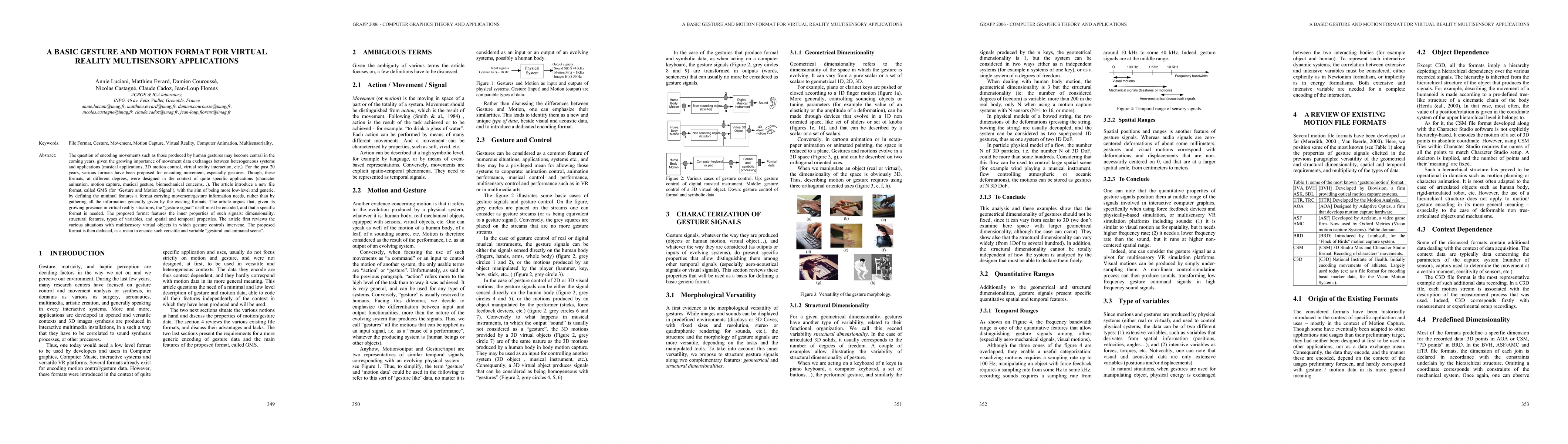 This paper introduces a new low-level and generic file format, GMS, designed to encode human gestures and movements for use in various virtual reality applications, emphasizing minimal essential features over comprehensive data. The proposed format aims to address the need for versatile encoding of gesture signals in multisensory virtual environments.