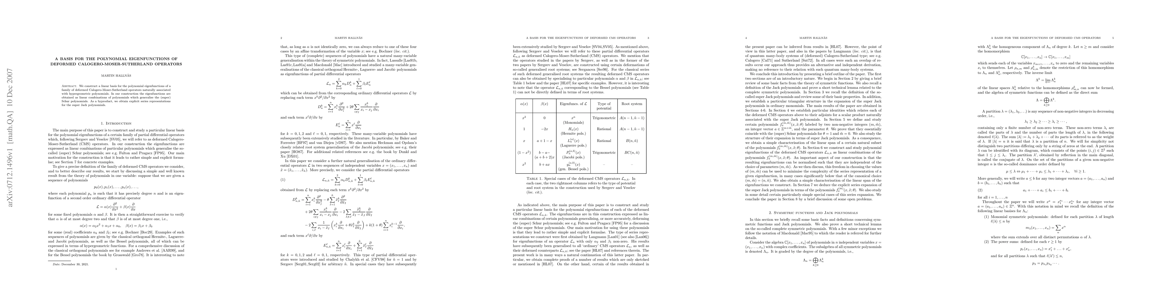 The paper constructs a linear basis for polynomial eigenfunctions of deformed Calogero-Moser-Sutherland operators, derived from hypergeometric polynomials and generalizing super Schur polynomials, leading to explicit series representations for super Jack polynomials.