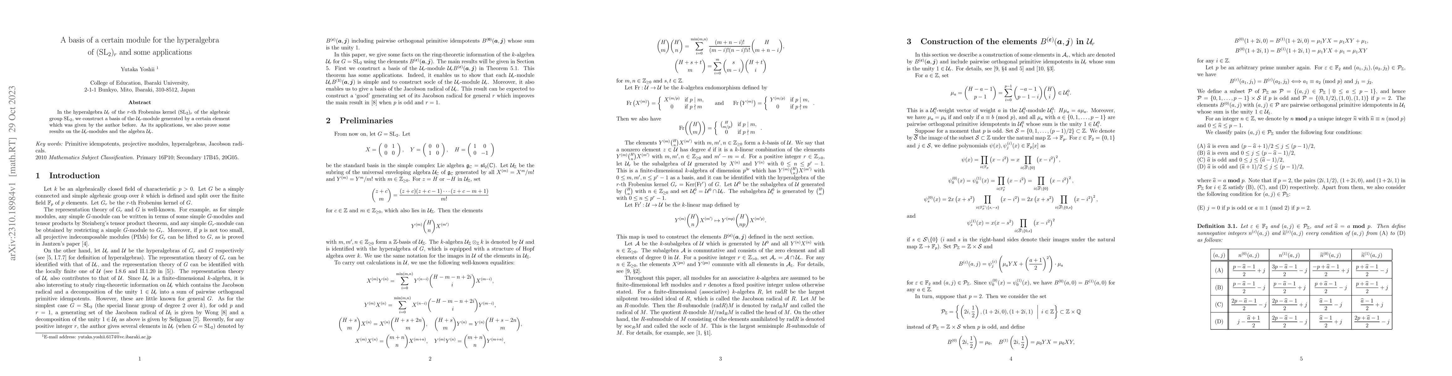 This paper constructs a basis for a $\mathcal{U}_r$-module in the hyperalgebra of the $r$-th Frobenius kernel of ${\rm SL}_2$, and uses this basis to derive results on $\mathcal{U}_r$-modules and the algebra $\mathcal{U}_r$.