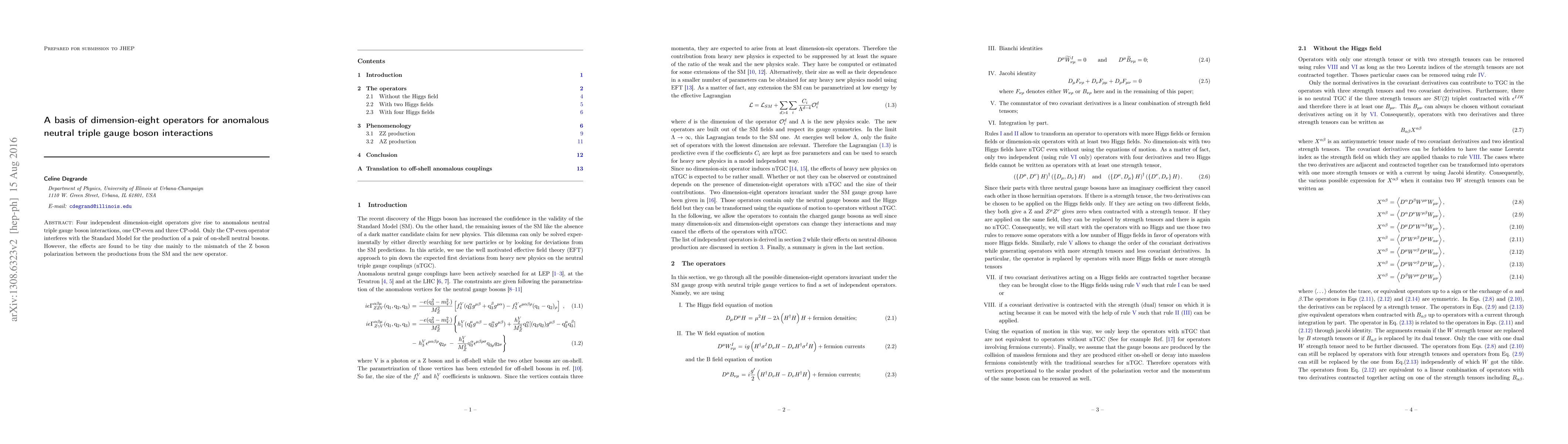 This paper identifies four independent dimension-eight operators that lead to anomalous neutral triple gauge boson interactions, comprising one CP-even and three CP-odd operators. The CP-even operator slightly interferes with the Standard Model, but its effects are minimal due to a mismatch in Z boson polarization.