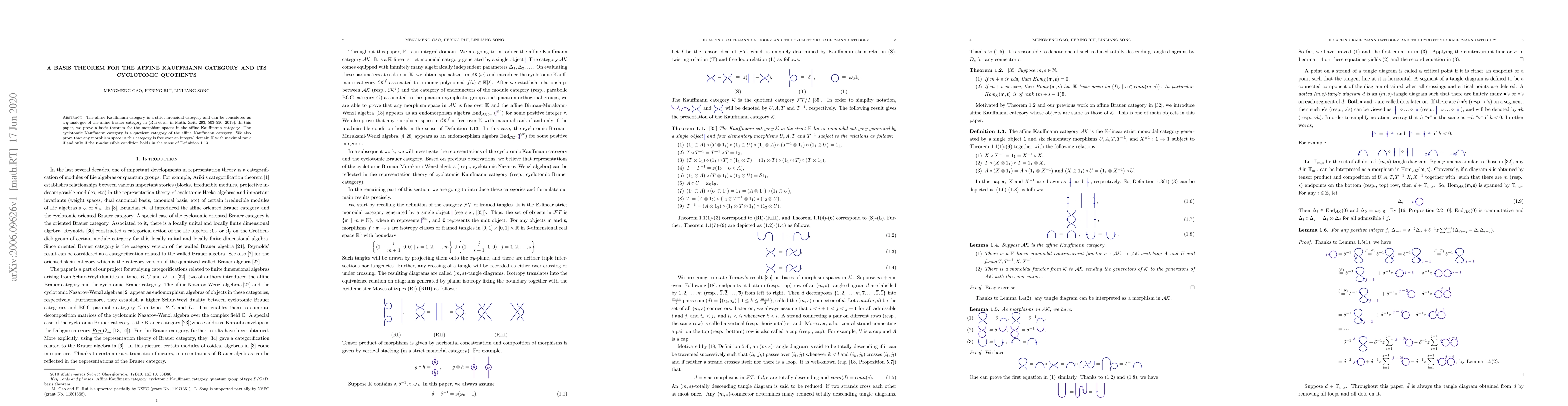 The affine Kauffmann category is a strict monoidal category and can be considered as a $q$-analogue of the affine Brauer category in (Rui et al. in Math. Zeit. 293, 503-550, 2019). In this paper, we prove a basis theorem for the morphism spaces in the affine Kauffmann category. The cyclotomic Kauffmann category is a quotient category of the affine Kauffmann category. We also prove that any morphism space in this category is free over an integral domain $\mathbb K$ with maximal rank if and only if the $\mathbf u$-admissible condition holds in the sense of Definition 1.13.