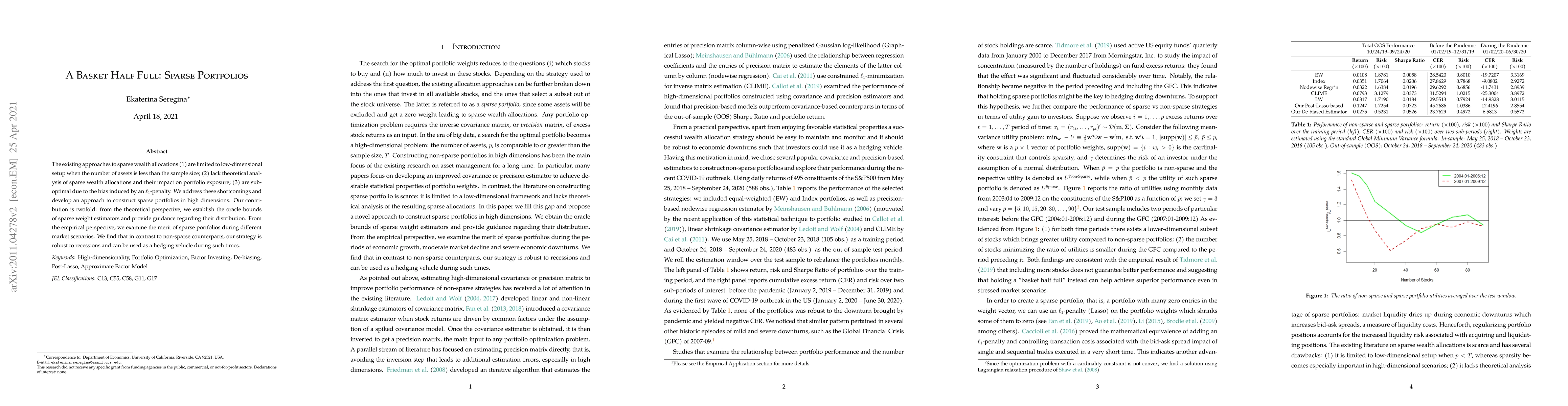 The existing approaches to sparse wealth allocations (1) are limited to low-dimensional setup when the number of assets is less than the sample size; (2) lack theoretical analysis of sparse wealth allocations and their impact on portfolio exposure; (3) are suboptimal due to the bias induced by an $\ell_1$-penalty. We address these shortcomings and develop an approach to construct sparse portfolios in high dimensions. Our contribution is twofold: from the theoretical perspective, we establish the oracle bounds of sparse weight estimators and provide guidance regarding their distribution. From the empirical perspective, we examine the merit of sparse portfolios during different market scenarios. We find that in contrast to non-sparse counterparts, our strategy is robust to recessions and can be used as a hedging vehicle during such times.