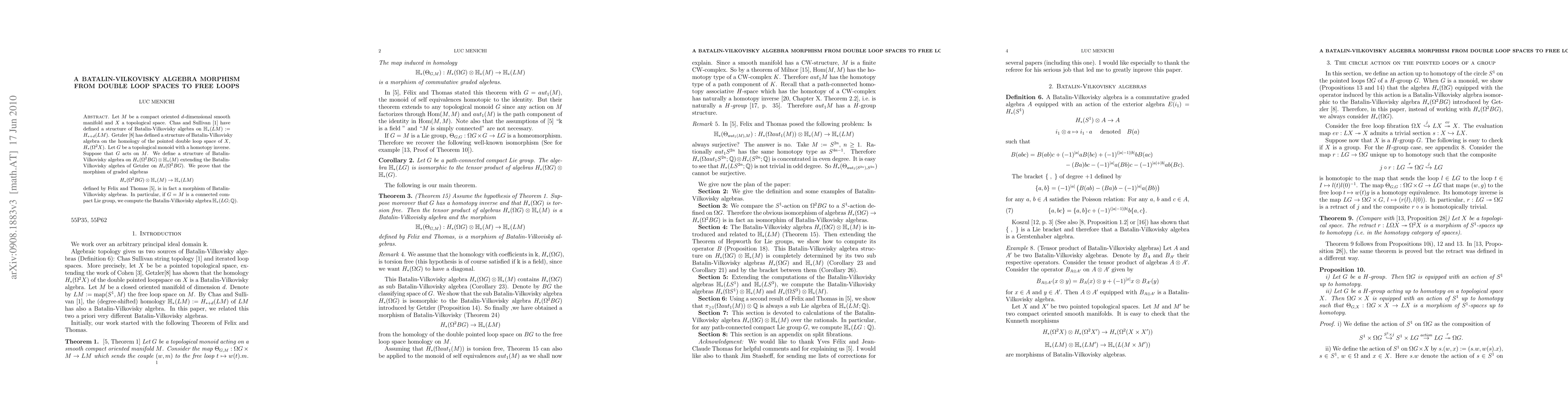 This paper constructs a Batalin-Vilkovisky algebra morphism from the homology of the double loop space of a topological monoid $G$ acting on a manifold $M$ to the homology of the free loops in $M$. It proves that a previously defined graded algebra morphism is also a Batalin-Vilkovisky algebra morphism.