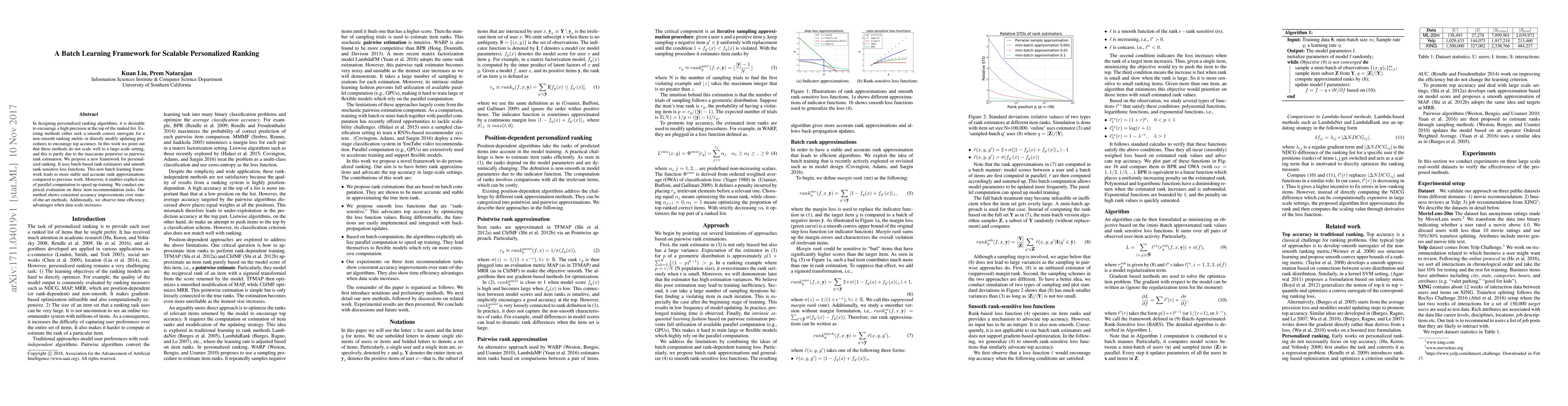 A new batch learning framework for personalized ranking improves accuracy and scalability compared to existing methods, enabling faster training on large datasets.