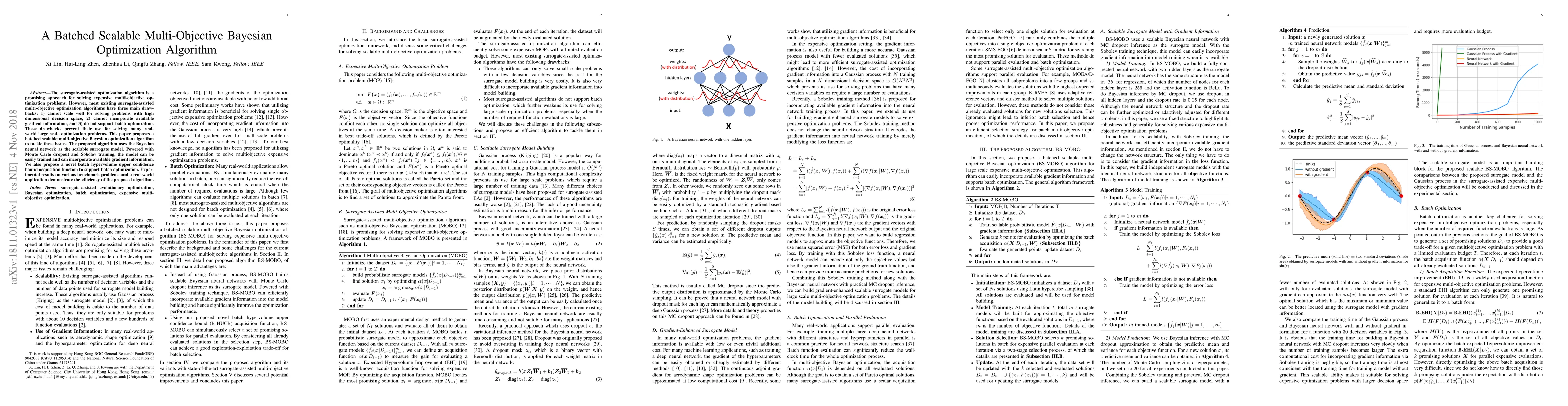 The surrogate-assisted optimization algorithm is a promising approach for solving expensive multi-objective optimization problems. However, most existing surrogate-assisted multi-objective optimization algorithms have three main drawbacks: 1) cannot scale well for solving problems with high dimensional decision space, 2) cannot incorporate available gradient information, and 3) do not support batch optimization. These drawbacks prevent their use for solving many real-world large scale optimization problems. This paper proposes a batched scalable multi-objective Bayesian optimization algorithm to tackle these issues. The proposed algorithm uses the Bayesian neural network as the scalable surrogate model. Powered with Monte Carlo dropout and Sobolov training, the model can be easily trained and can incorporate available gradient information. We also propose a novel batch hypervolume upper confidence bound acquisition function to support batch optimization. Experimental results on various benchmark problems and a real-world application demonstrate the efficiency of the proposed algorithm.