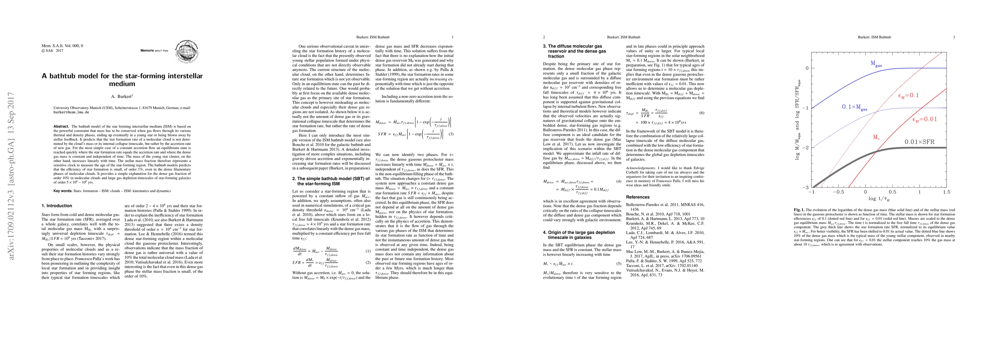 The bathtub model predicts that star formation efficiency is low (1%) and that the age of a star-forming region can be measured through the stellar mass fraction. It also explains why dense gas fractions in molecular clouds are relatively small.
