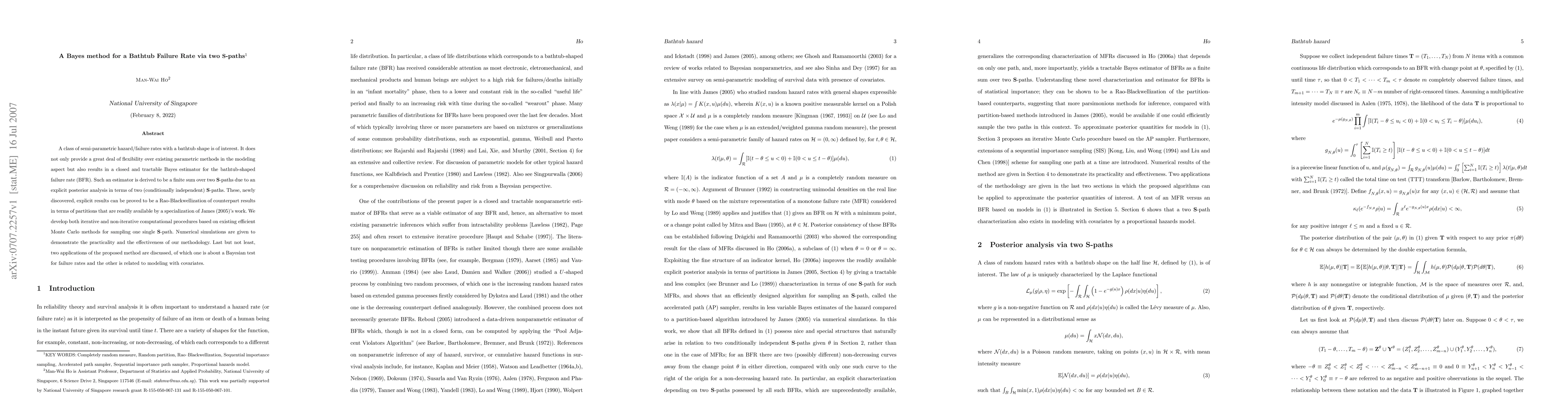 A class of semi-parametric hazard/failure rates with a bathtub shape is of interest. It does not only provide a great deal of flexibility over existing parametric methods in the modeling aspect but also results in a closed and tractable Bayes estimator for the bathtub-shaped failure rate (BFR). Such an estimator is derived to be a finite sum over two $\mathbf{S}$-paths due to an explicit posterior analysis in terms of two (conditionally independent) $\mathbf{S}$-paths. These, newly discovered, explicit results can be proved to be a Rao-Blackwellization of counterpart results in terms of partitions that are readily available by a specialization of James (2005)'s work. We develop both iterative and non-iterative computational procedures based on existing efficient Monte Carlo methods for sampling one single $\mathbf{S}$-path. Nmerical simulations are given to demonstrate the practicality and the effectiveness of our methodology. Last but not least, two applications of the proposed method are discussed, of which one is about a Bayesian test for failure rates and the other is related to modeling with covariates.