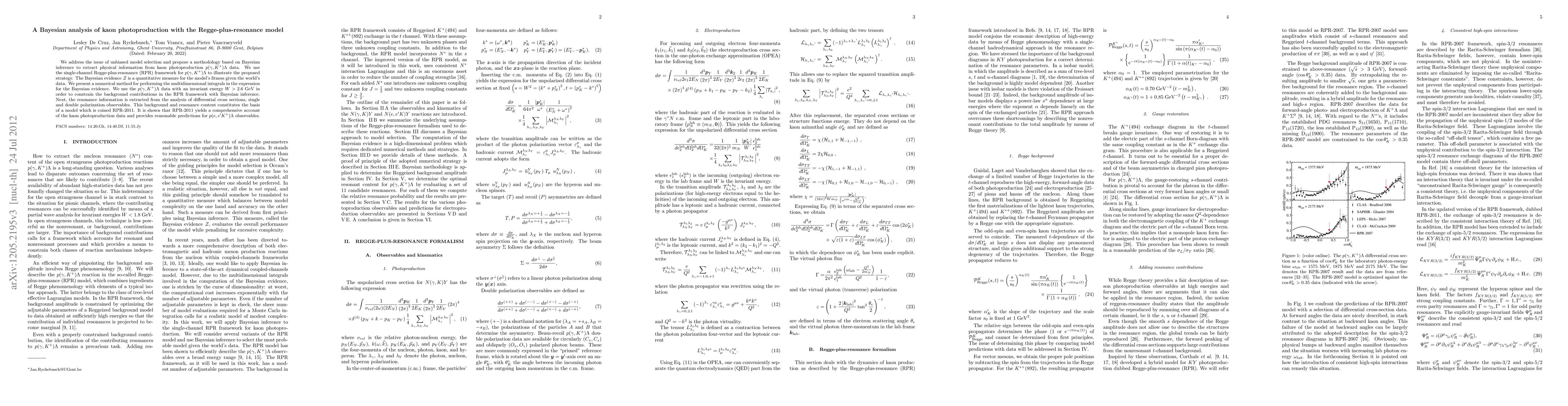 This paper proposes a Bayesian inference methodology to analyze kaon photoproduction data using the Regge-plus-resonance model, demonstrating its effectiveness through multidimensional integration techniques. The resulting RPR-2011 model provides a comprehensive fit to the data and predicts observables for $p(e,e' K^+)\Lambda$ processes.