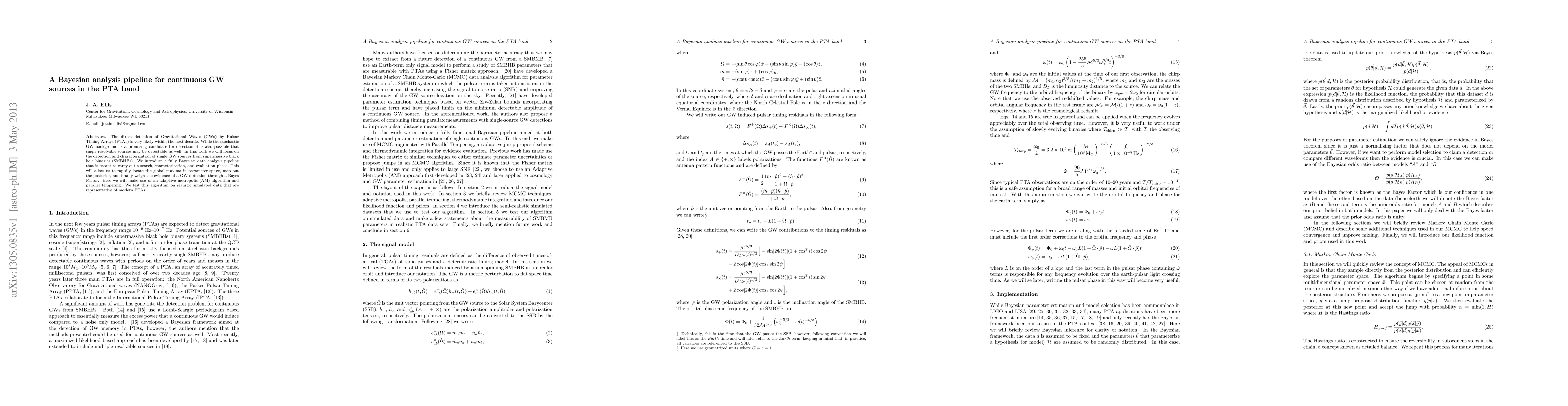 The direct detection of Gravitational Waves (GWs) by Pulsar Timing Arrays (PTAs) is very likely within the next decade. While the stochastic GW background is a promising candidate for detection it is also possible that single resolvable sources may be detectable as well. In this work we will focus on the detection and characterization of single GW sources from supermassive black hole binaries (SMBHBs). We introduce a fully Bayesian data analysis pipeline that is meant to carry out a search, characterization, and evaluation phase. This will allow us to rapidly locate the global maxima in parameter space, map out the posterior, and finally weigh the evidence of a GW detection through a Bayes Factor. Here we will make use of an adaptive metropolis (AM) algorithm and parallel tempering. We test this algorithm on realistic simulated data that are representative of modern PTAs.