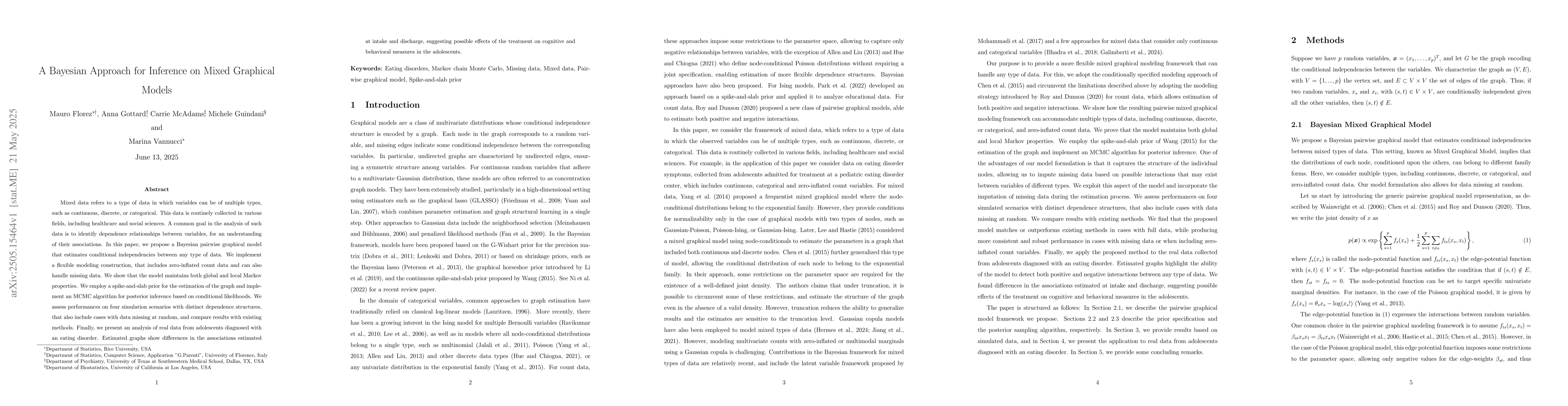 Researchers propose a Bayesian method to analyze mixed data with variables of different types, estimating dependence relationships between them. The approach is tested on simulated data and real-world eating disorder data, revealing differences in associations over time.