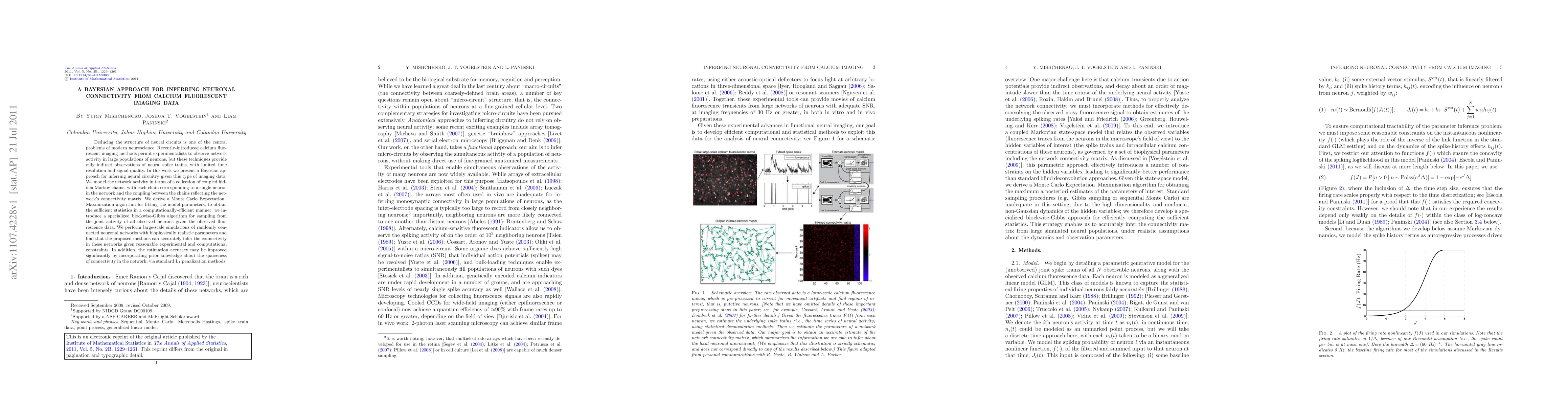 This paper proposes a Bayesian method to infer neuronal connectivity from calcium fluorescent imaging data using coupled hidden Markov chains and a specialized blockwise-Gibbs sampling algorithm. The approach demonstrates accurate connectivity inference in simulated neuronal networks under realistic constraints, with further improvements possible through incorporating sparsity priors.