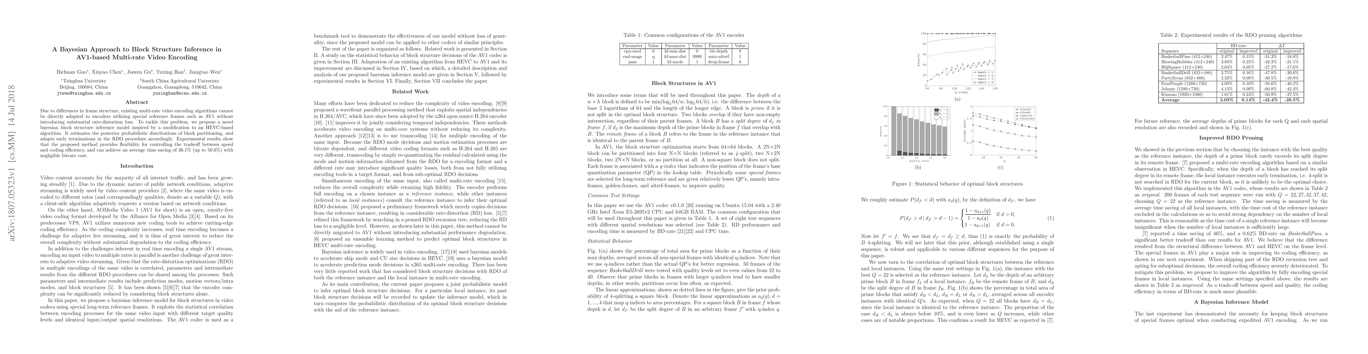 This paper proposes a Bayesian approach to infer block structure in AV1-based multi-rate video encoding, allowing for flexible tradeoff between speed and coding efficiency with significant time savings.