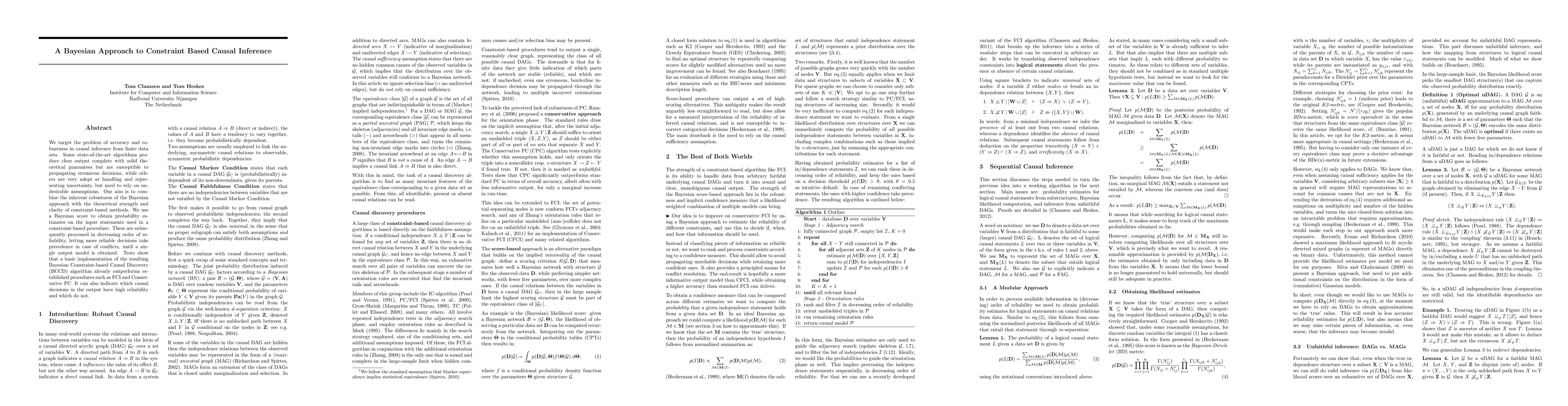 This paper proposes a Bayesian Constraint-based Causal Discovery (BCCD) algorithm that combines the robustness of Bayesian methods with the clarity of constraint-based causal inference. The BCCD algorithm uses a Bayesian score to prioritize reliable causal decisions, outperforming existing methods like FCI and Conservative PC in both accuracy and robustness.