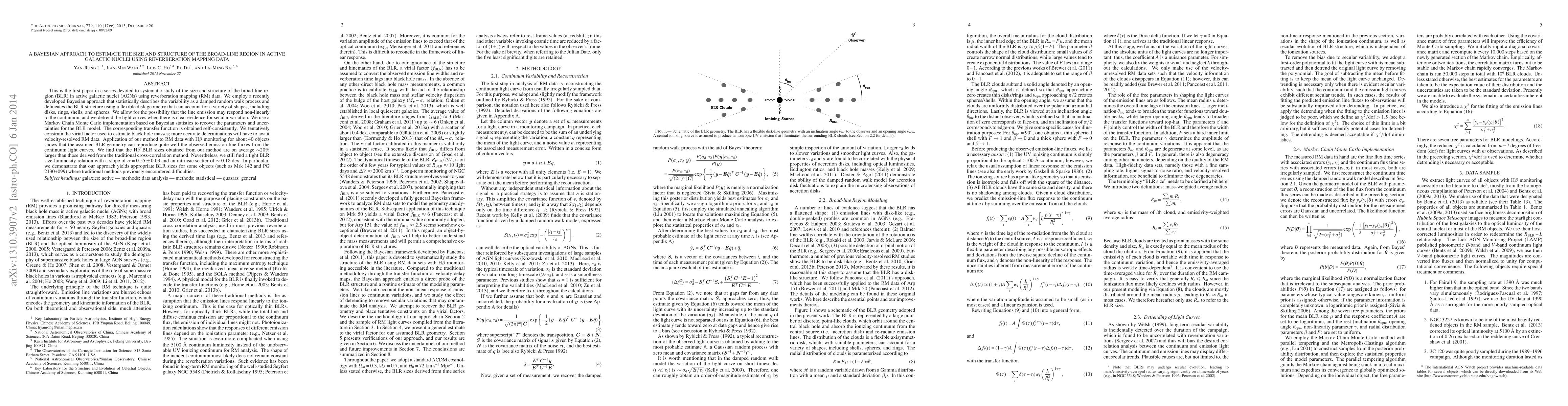 This paper introduces a Bayesian approach for estimating the size and structure of the broad-line region in active galactic nuclei using reverberation mapping data, showing that it yields larger BLR sizes and better fits for complex geometries compared to traditional methods, while maintaining a consistent BLR size-luminosity relation.