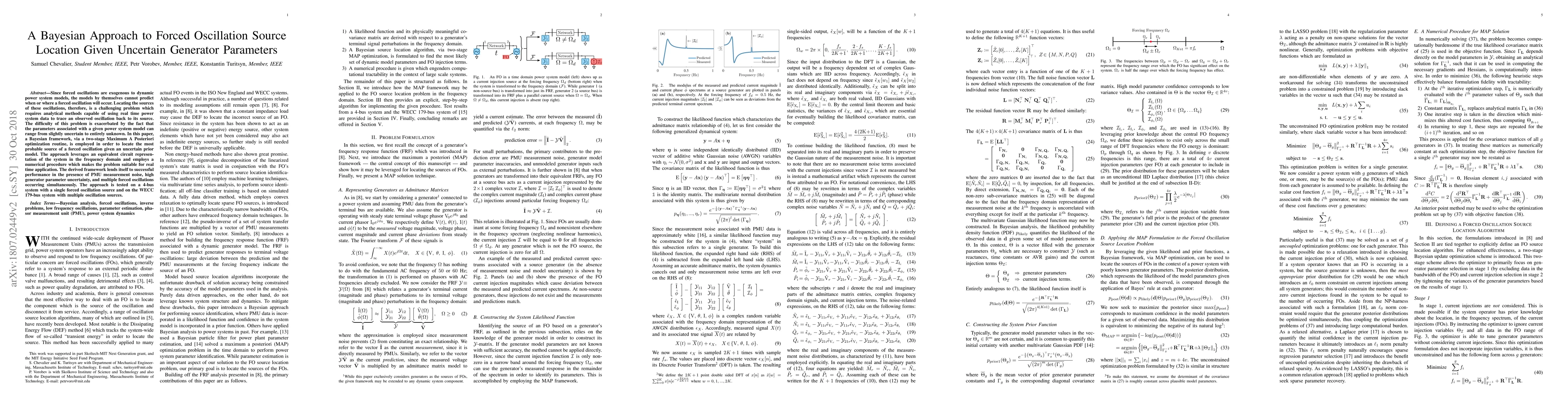 This paper proposes a Bayesian framework to identify the source of forced oscillations in power systems, even when generator parameters are uncertain. The method uses a two-stage Maximum A Posteriori optimization and is tested on both a small 4-bus system and a larger WECC 179-bus system, demonstrating robustness against measurement noise and multiple simultaneous oscillations.