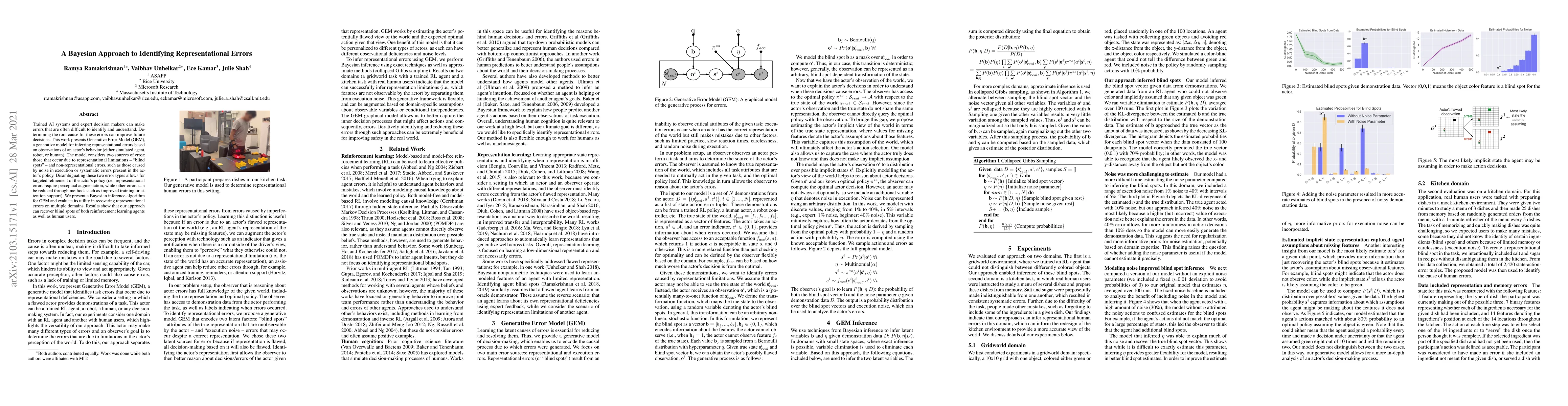 This paper introduces the Generative Error Model (GEM) to identify representational errors in AI systems and human decision makers, distinguishing between representational "blind spots" and non-representational errors. The Bayesian inference algorithm developed for GEM effectively recovers these errors, enabling targeted policy refinements.