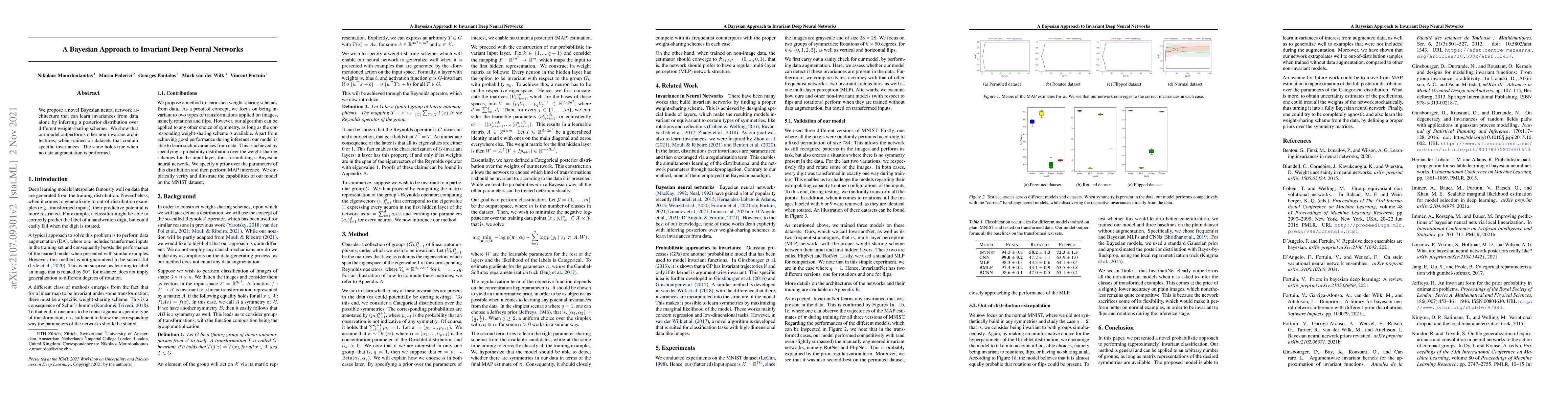 We propose a novel Bayesian neural network architecture that can learn invariances from data alone by inferring a posterior distribution over different weight-sharing schemes. We show that our model outperforms other non-invariant architectures, when trained on datasets that contain specific invariances. The same holds true when no data augmentation is performed.