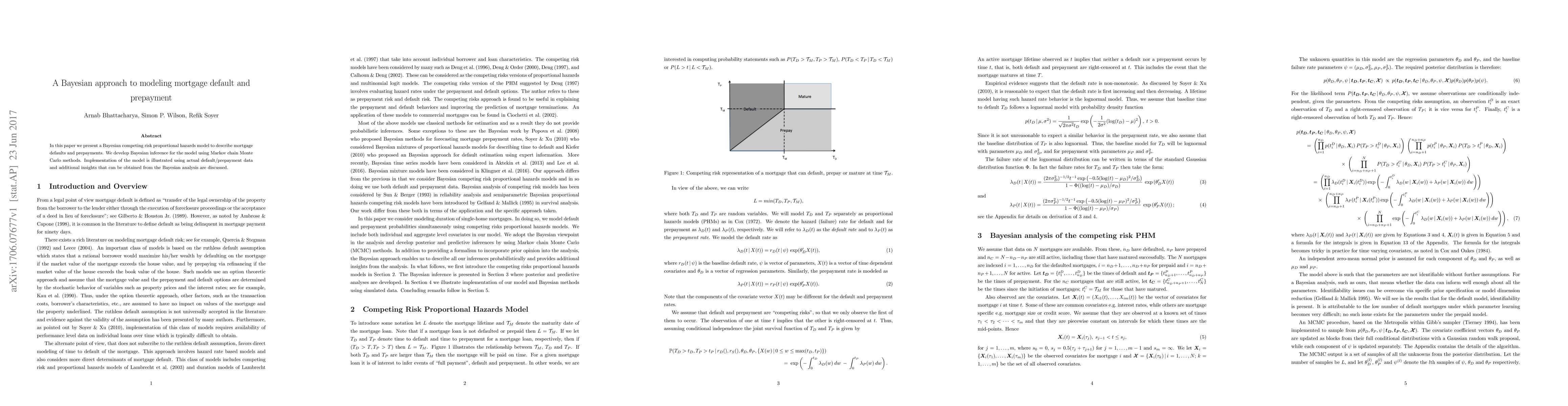This paper introduces a Bayesian competing risk proportional hazards model for mortgage default and prepayment, employing Markov chain Monte Carlo methods for Bayesian inference. The model is demonstrated using real-world data, providing additional insights from the Bayesian analysis.