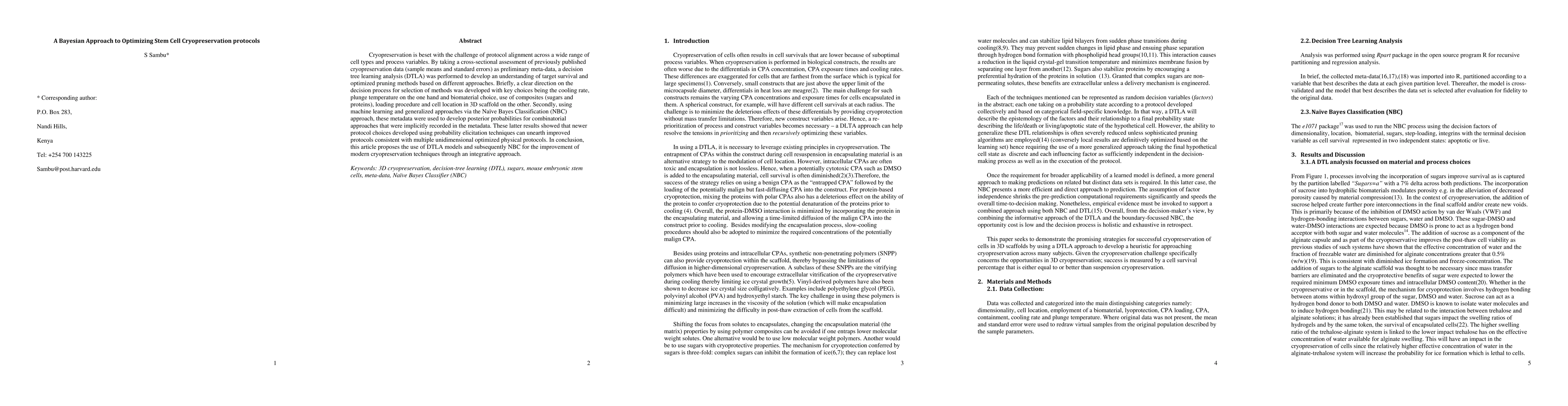 Researchers developed a Bayesian approach to optimizing stem cell cryopreservation protocols using machine learning and decision tree learning, revealing optimal cooling rates and biomaterials for improved survival rates.