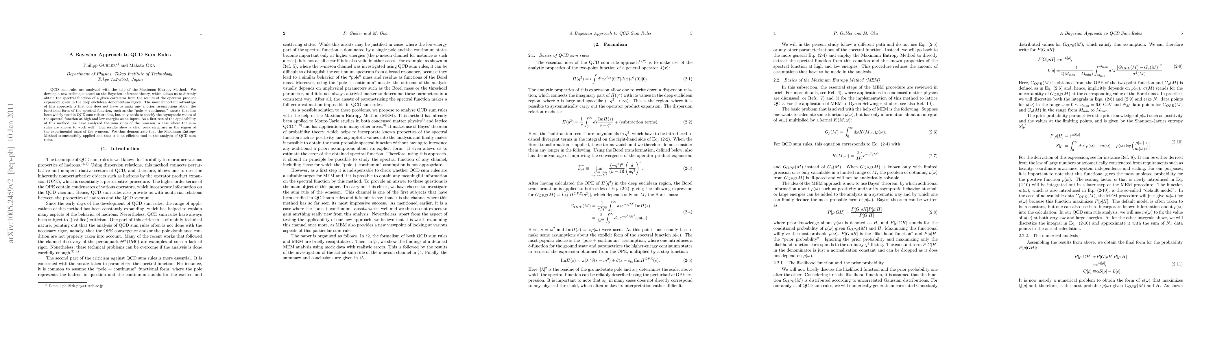 This paper introduces a Bayesian approach using Maximum Entropy Method to analyze QCD sum rules, eliminating the need for a priori assumptions about the spectral function's form. The method is tested on rho-meson sum rules, showing a clear peak structure and demonstrating its effectiveness.