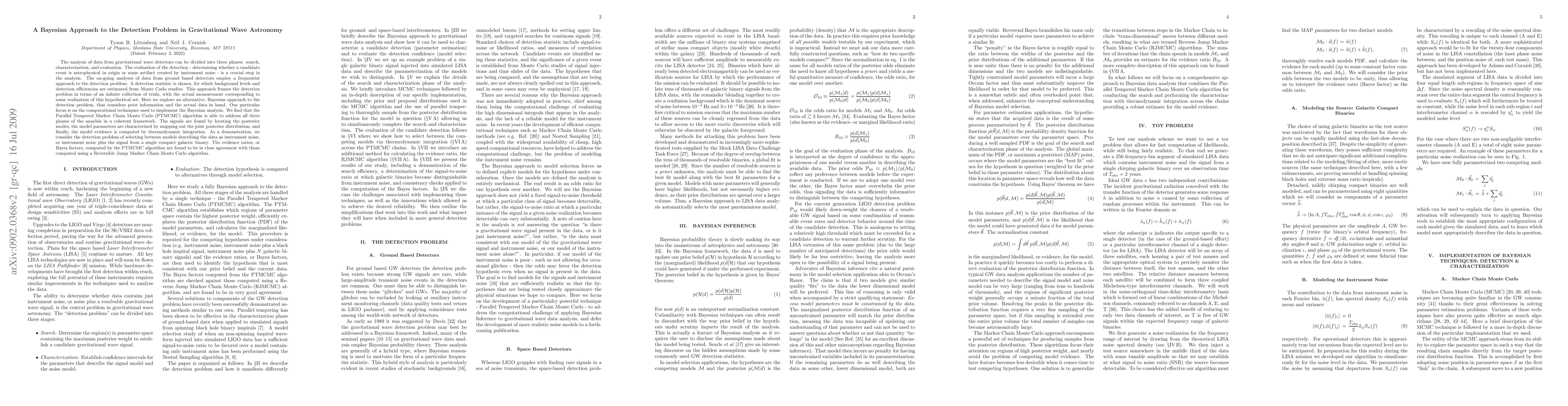 This paper explores a Bayesian approach to the detection problem in gravitational wave astronomy, contrasting it with the frequentist method currently used. The authors employ the Parallel Tempered Markov Chain Monte Carlo (PTMCMC) algorithm to implement the Bayesian analysis, demonstrating its effectiveness in addressing search, characterization, and evaluation phases.