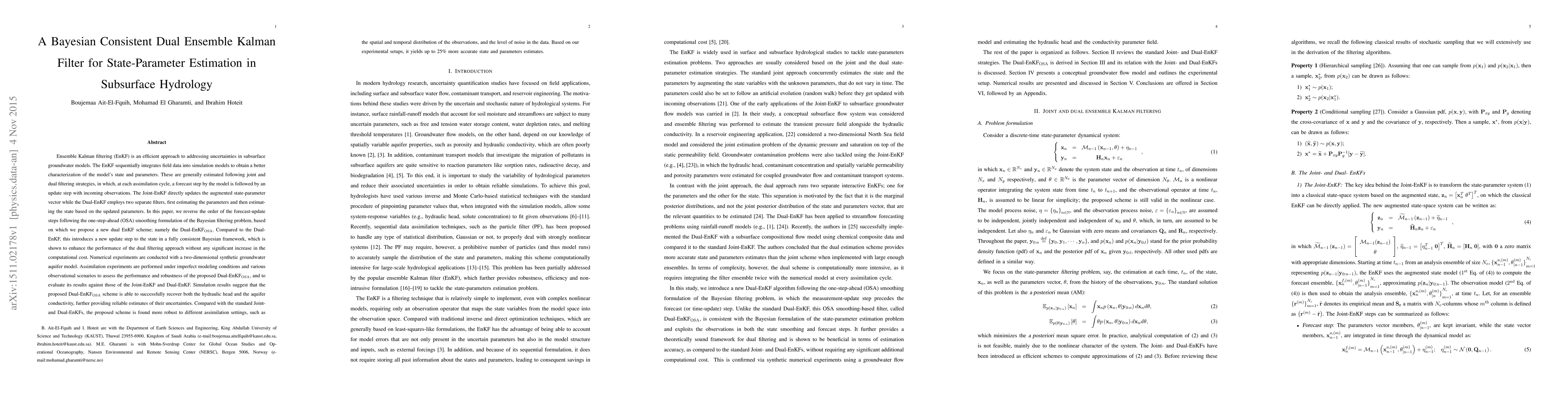 A new Bayesian filtering approach called Dual-EnKF$_{ m OSA}$ is proposed for subsurface groundwater models, achieving up to 25% more accurate state and parameter estimates than existing methods.