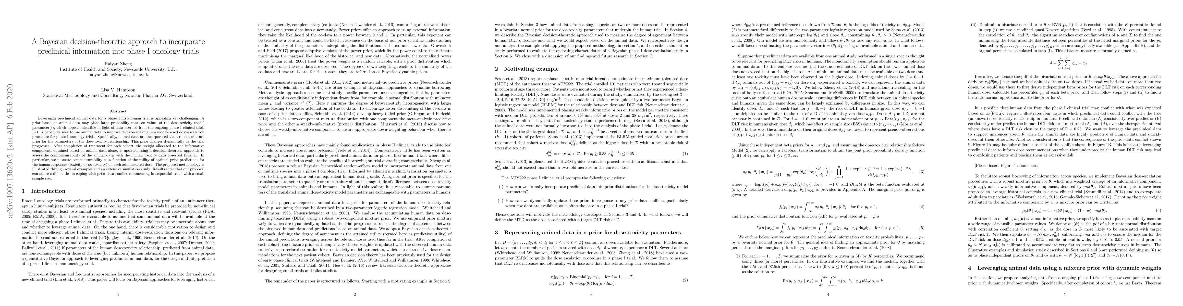 A new Bayesian approach incorporates preclinical animal data into phase I oncology trials to improve decision-making, reducing conflicts between prior predictions and human toxicity data.