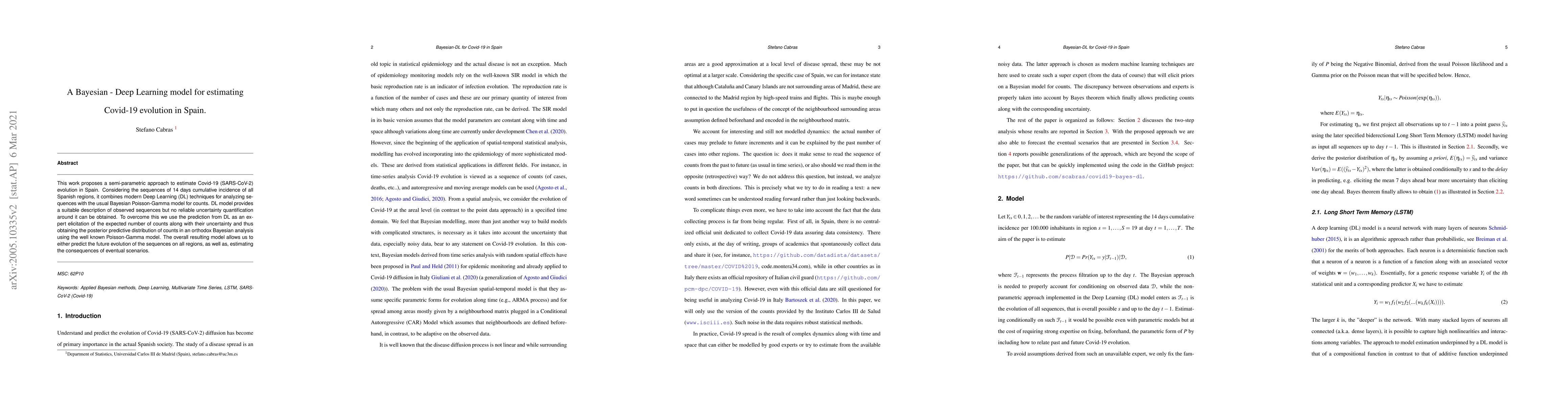 This paper combines Deep Learning techniques with a Bayesian Poisson-Gamma model to estimate Covid-19 evolution in Spain, providing reliable uncertainty quantification and enabling predictions and scenario analysis.