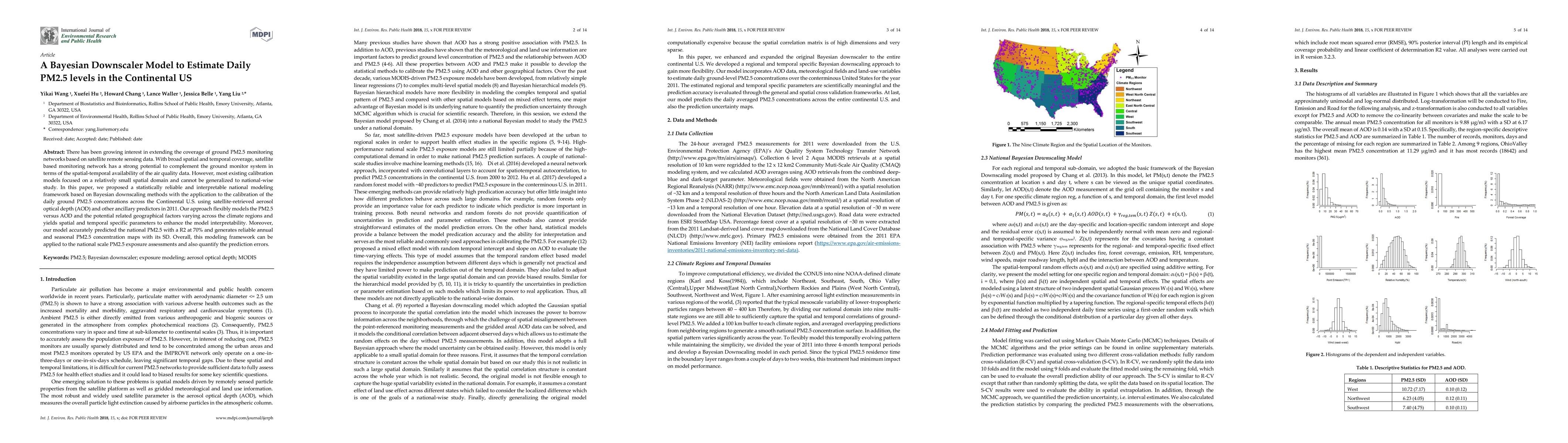 There has been growing interest in extending the coverage of ground PM2.5 monitoring networks based on satellite remote sensing data. With broad spatial and temporal coverage, satellite based monitoring network has a strong potential to complement the ground monitor system in terms of the spatial-temporal availability of the air quality data. However, most existing calibration models focused on a relatively small spatial domain and cannot be generalized to national-wise study. In this paper, we proposed a statistically reliable and interpretable national modeling framework based on Bayesian downscaling methods with the application to the calibration of the daily ground PM2.5 concentrations across the Continental U.S. using satellite-retrieved aerosol optical depth (AOD) and other ancillary predictors in 2011. Our approach flexibly models the PM2.5 versus AOD and the potential related geographical factors varying across the climate regions and yields spatial and temporal specific parameters to enhance the model interpretability. Moreover, our model accurately predicted the national PM2.5 with a R2 at 70% and generates reliable annual and seasonal PM2.5 concentration maps with its SD. Overall, this modeling framework can be applied to the national scale PM2.5 exposure assessments and also quantify the prediction errors.
