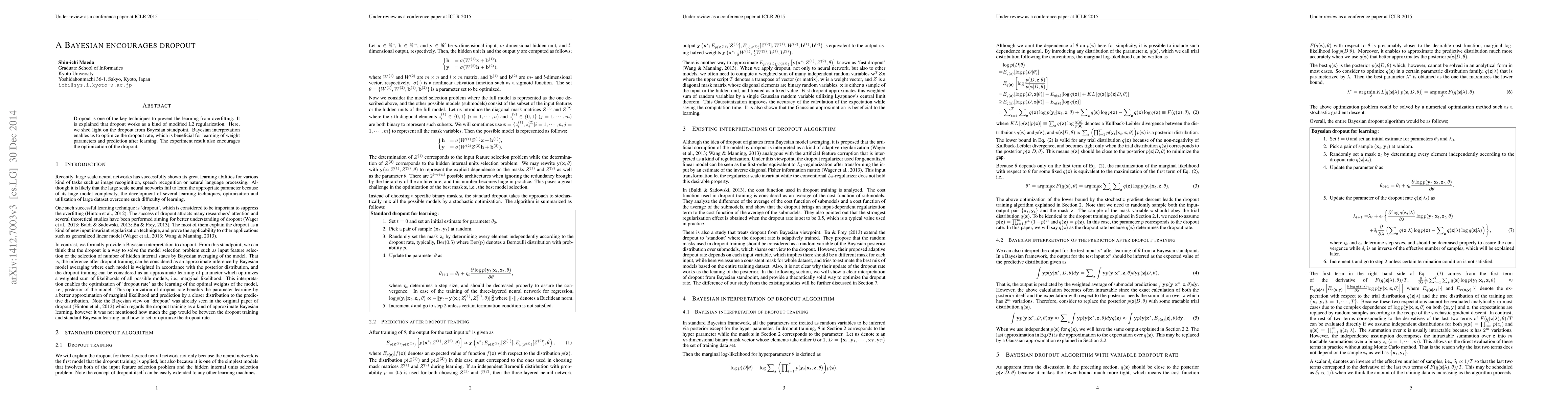 This paper provides a Bayesian perspective on dropout, explaining its role as a form of modified L2 regularization. It demonstrates that optimizing the dropout rate from a Bayesian standpoint enhances weight parameter learning and prediction accuracy, supported by experimental results.