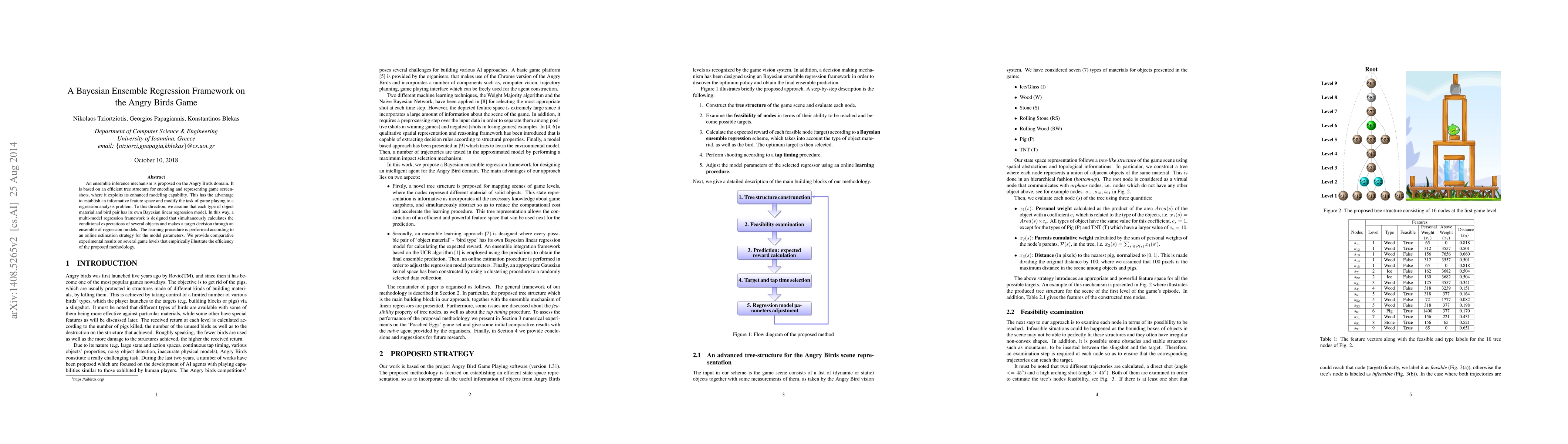 An ensemble inference mechanism is proposed on the Angry Birds domain. It is based on an efficient tree structure for encoding and representing game screenshots, where it exploits its enhanced modeling capability. This has the advantage to establish an informative feature space and modify the task of game playing to a regression analysis problem. To this direction, we assume that each type of object material and bird pair has its own Bayesian linear regression model. In this way, a multi-model regression framework is designed that simultaneously calculates the conditional expectations of several objects and makes a target decision through an ensemble of regression models. Learning procedure is performed according to an online estimation strategy for the model parameters. We provide comparative experimental results on several game levels that empirically illustrate the efficiency of the proposed methodology.