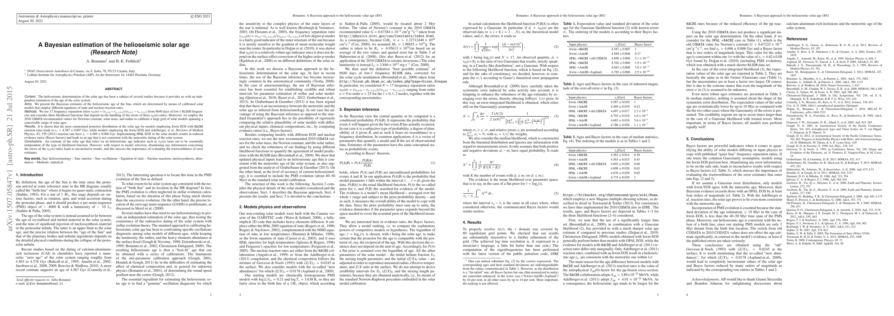 The paper presents a Bayesian approach to estimate the solar age using helioseismic data, providing a robust method for comparing solar models with different physical inputs.