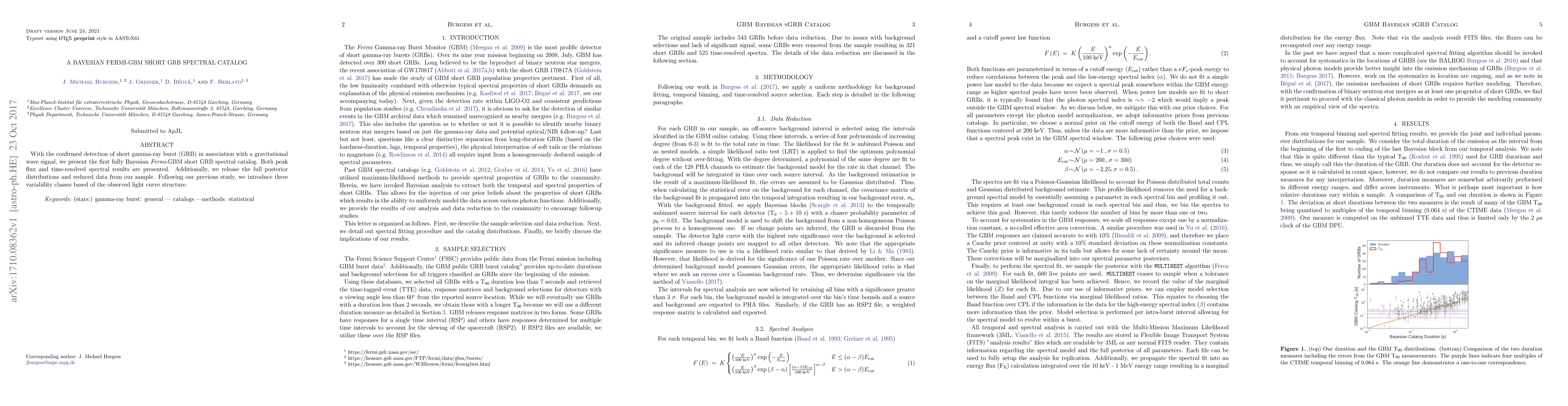 This paper presents the first fully Bayesian spectral catalog for short gamma-ray bursts using {\it Fermi}-GBM data, including peak flux and time-resolved spectral results. It also introduces three variability classes based on the observed light curve structure.